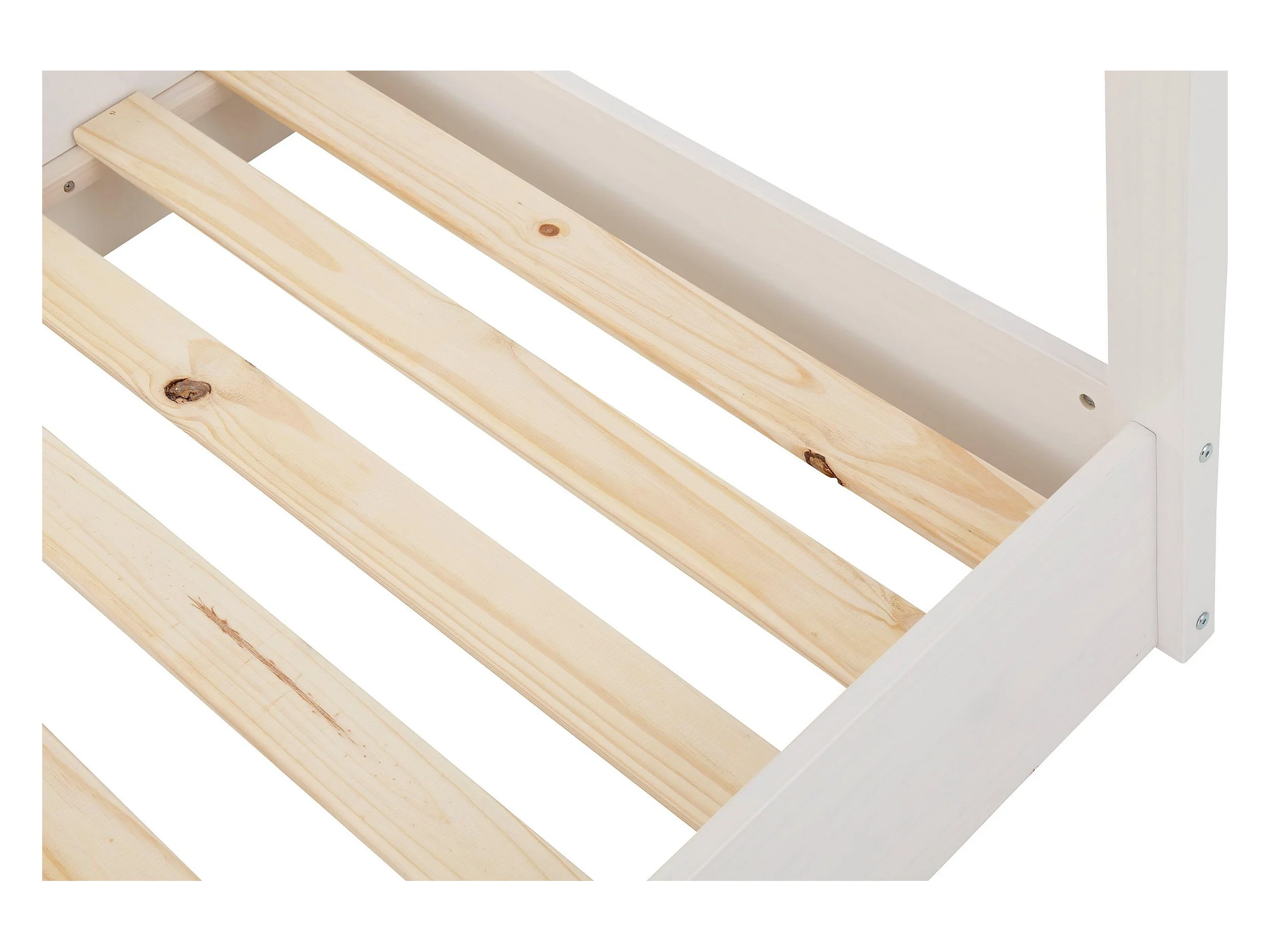 ML-Design Letto per bambini a forma di casa 90x200 cm bianco con materasso sfoderabile in schiuma fredda sponde anticaduta rete a doghe legno di pino