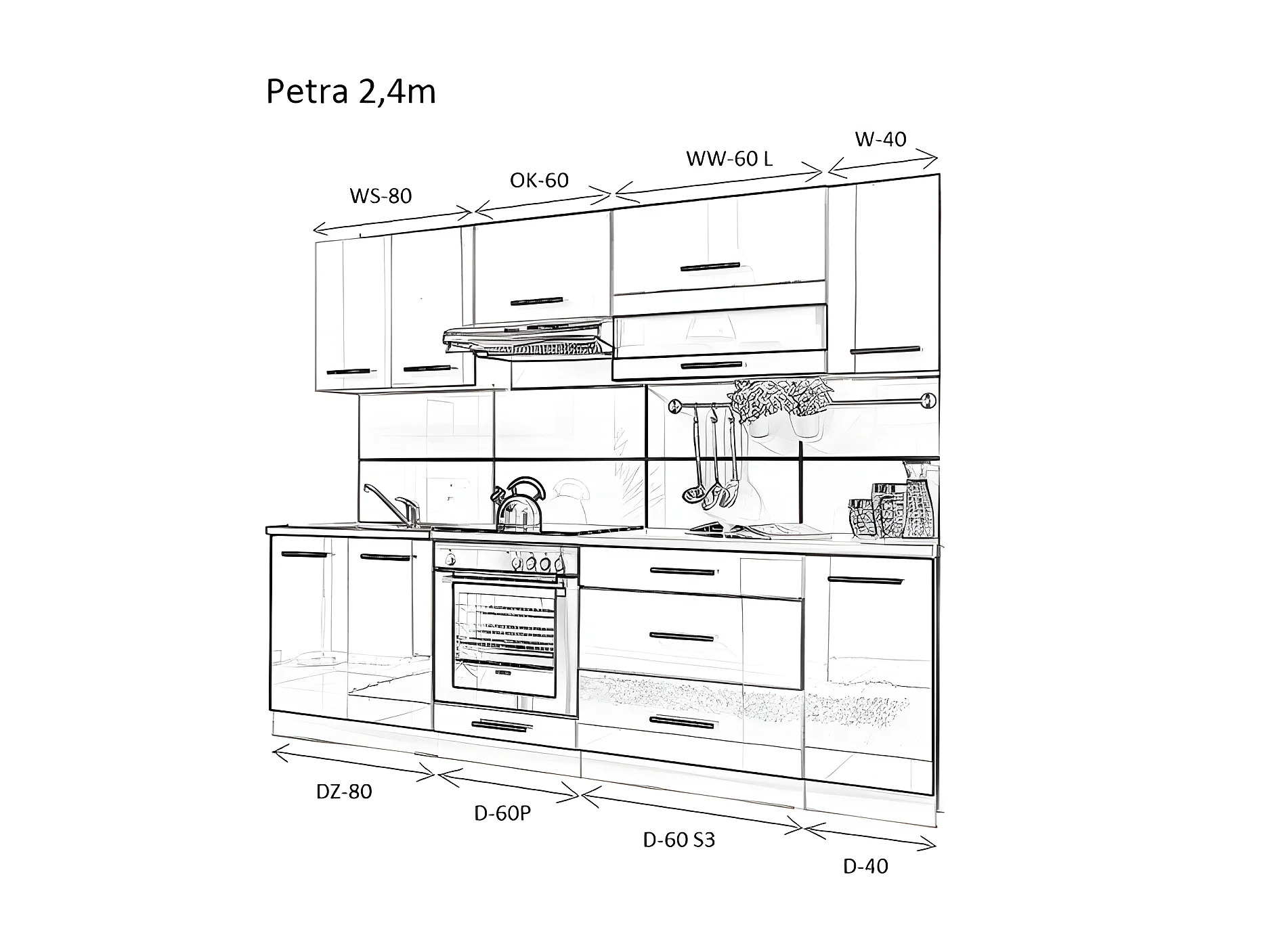 ELM 260 | Cucina Completa L 260cm | 8 pezzi + piano di lavoro INCLUSI | Set mobili da cucina lineare + mobile forno integrato