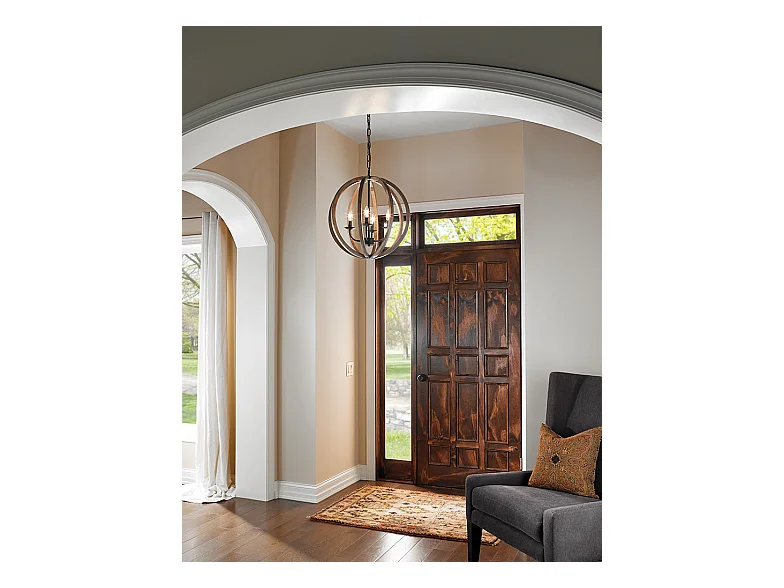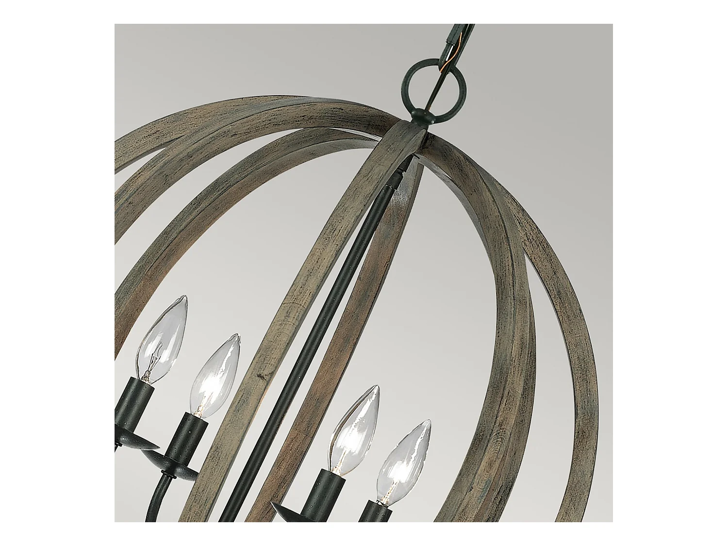 Elstead Allier - Sospensione a soffitto a gabbia sferica a 4 luci legno scuro, ferro antico, attacco E14