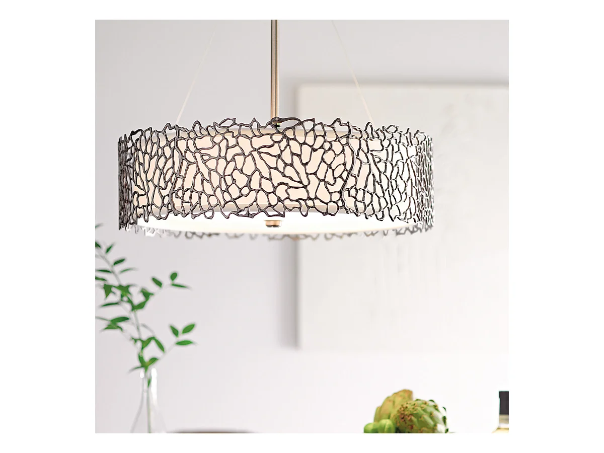 Pendente grande a 4 luci Elstead Lacey, peltro antico, attacco E27