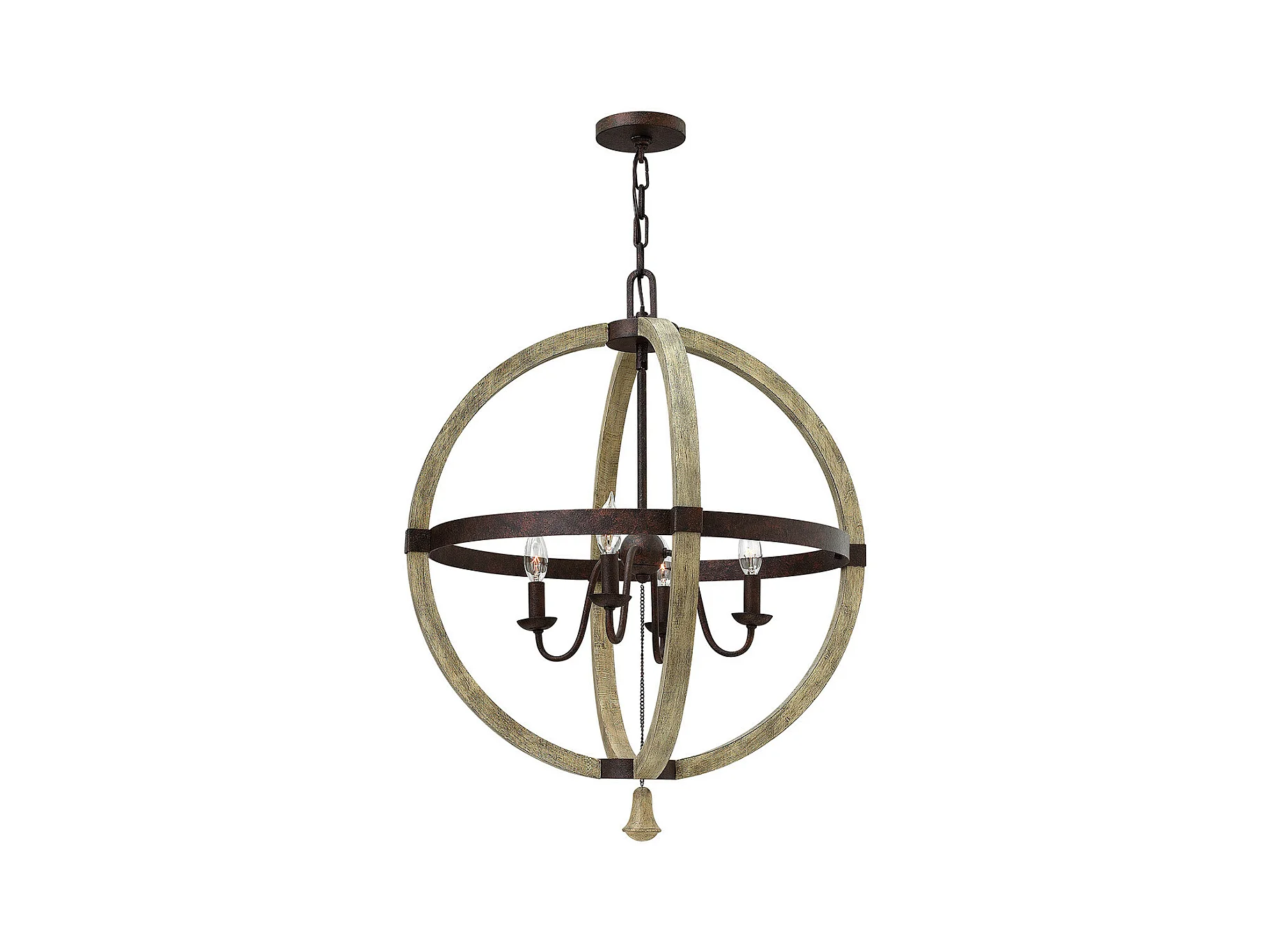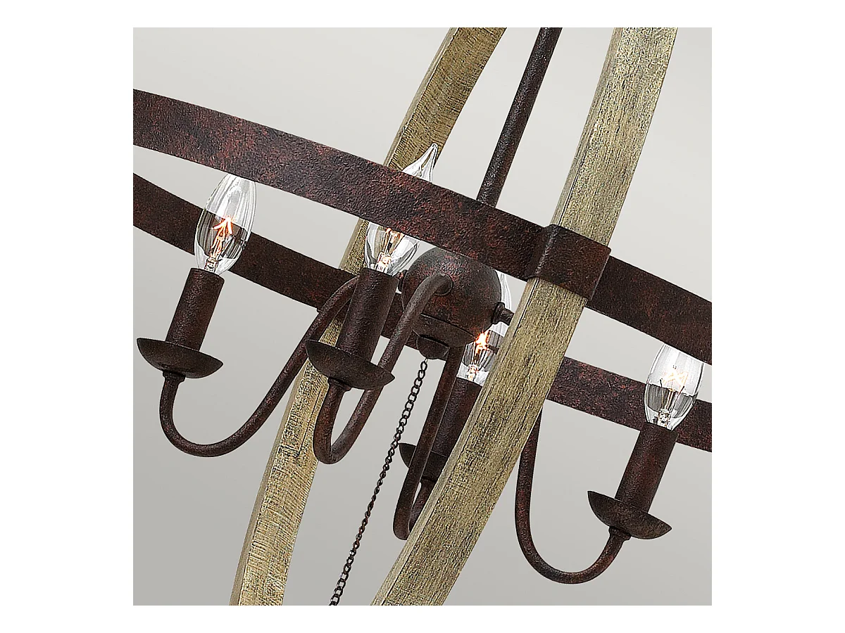 Elstead Allier - Sospensione a soffitto a gabbia sferica a 4 luci legno scuro, ferro antico, attacco E14