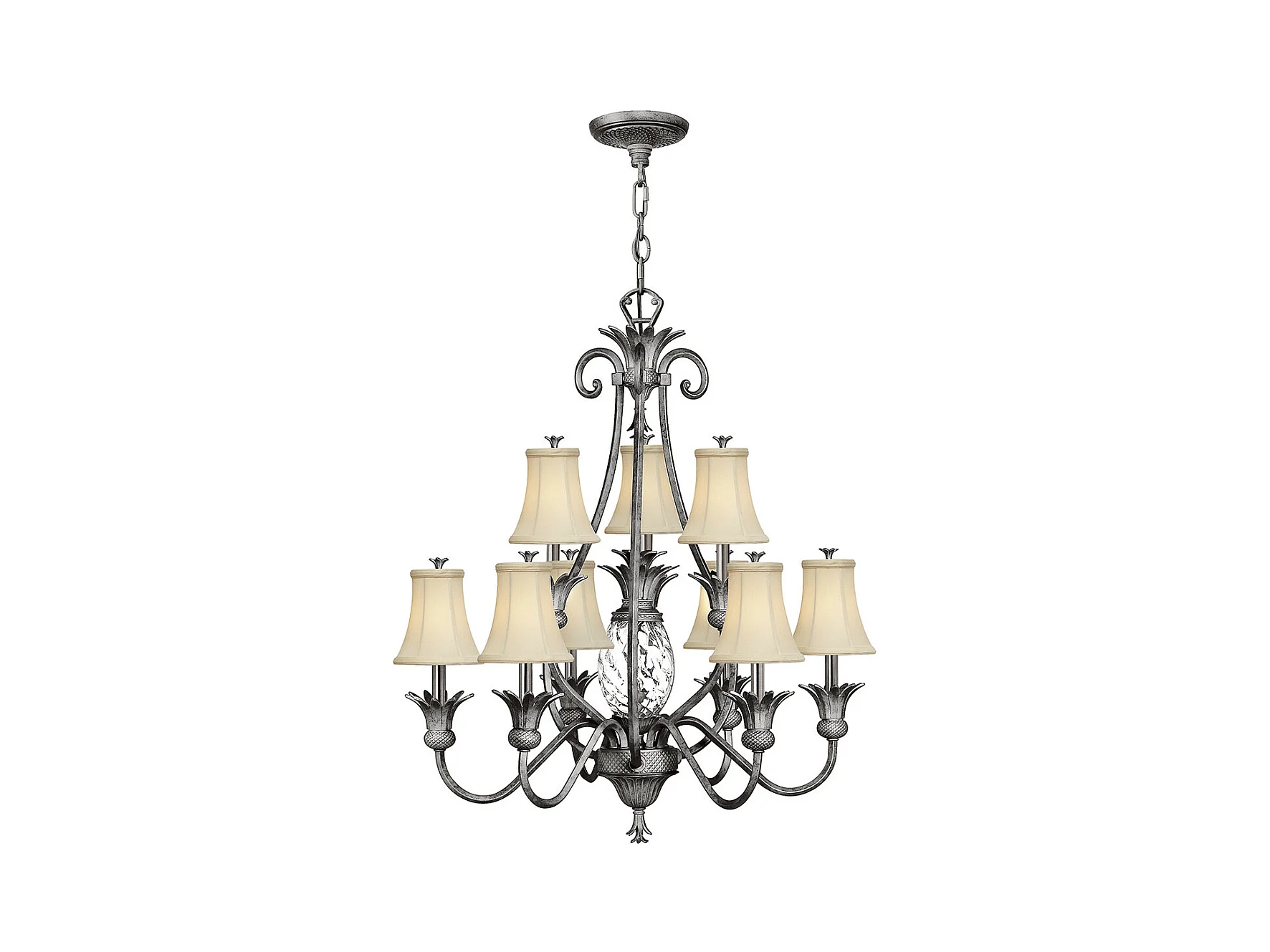 Elstead Plantation - Lampadario multibraccio a 10 luci con finitura nichel antico lucido, attacco E14