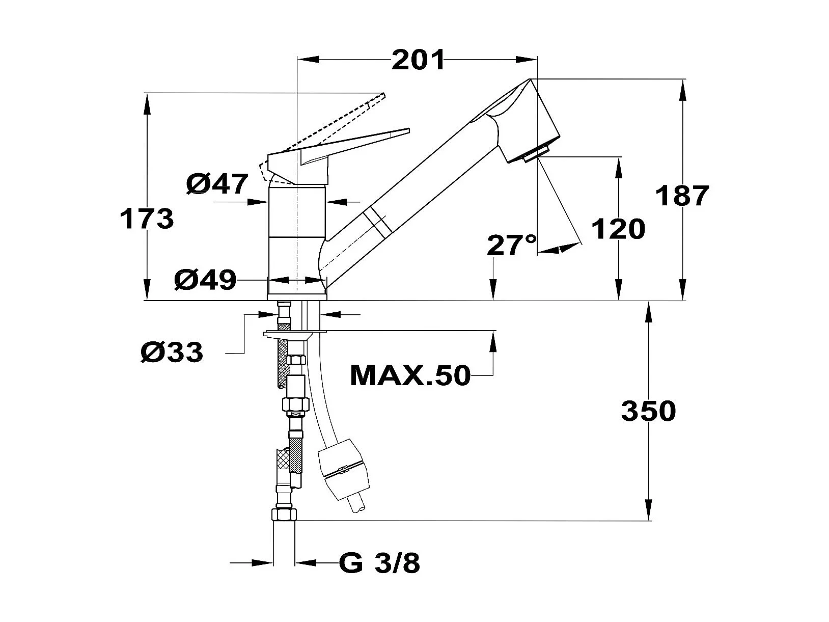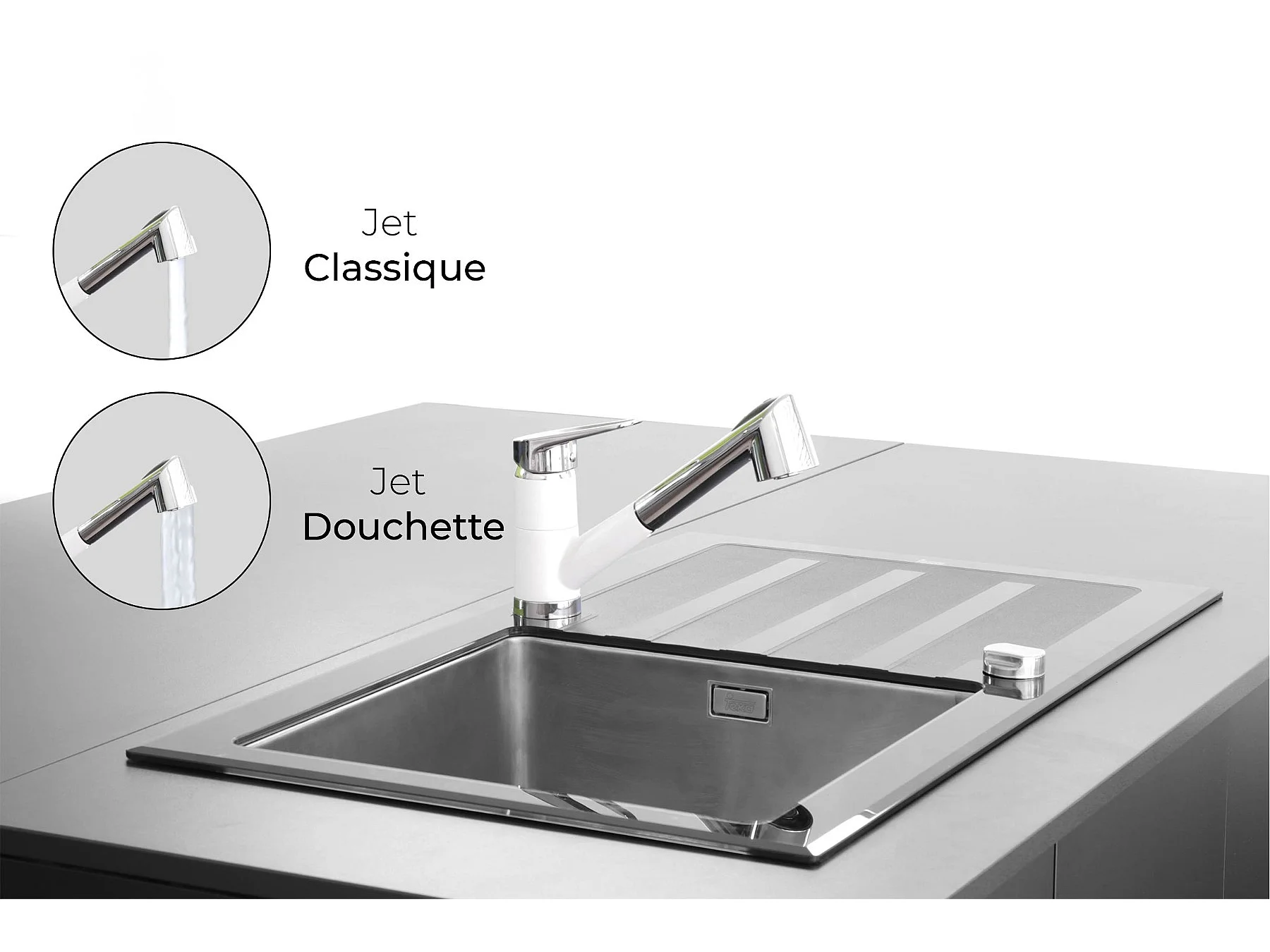 Embla miscelatore bianco cromato per lavello con doccetta estraibile Essebagno