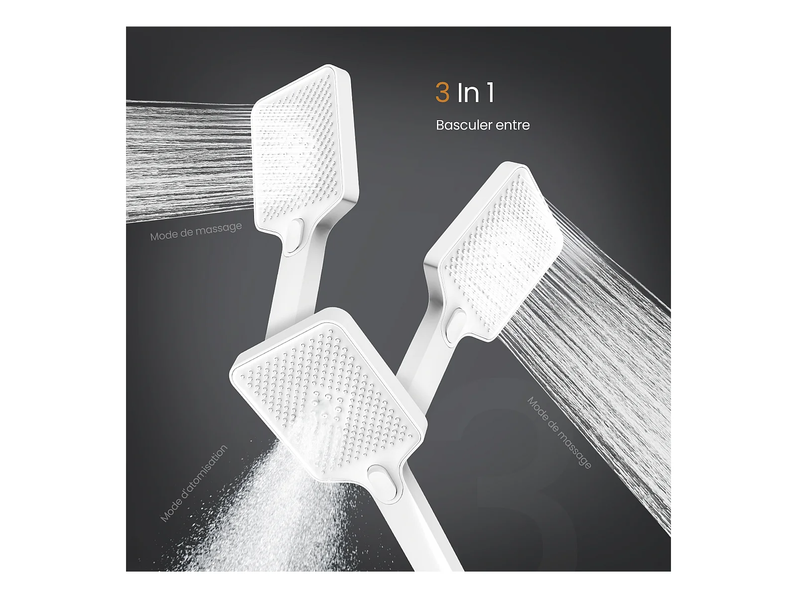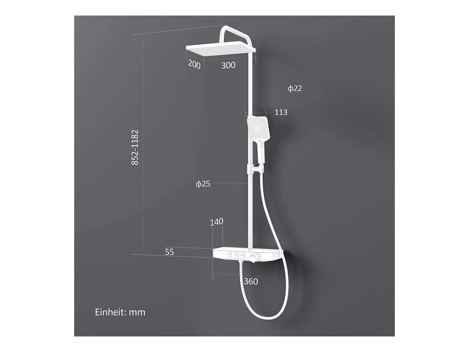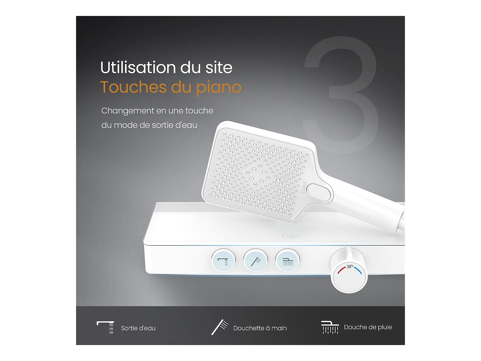 Colonna doccia termostatica EMKE – Bianco opaco, flusso d'acqua regolabile, design minimalista separato, doccetta 3 funzioni, kit doccia