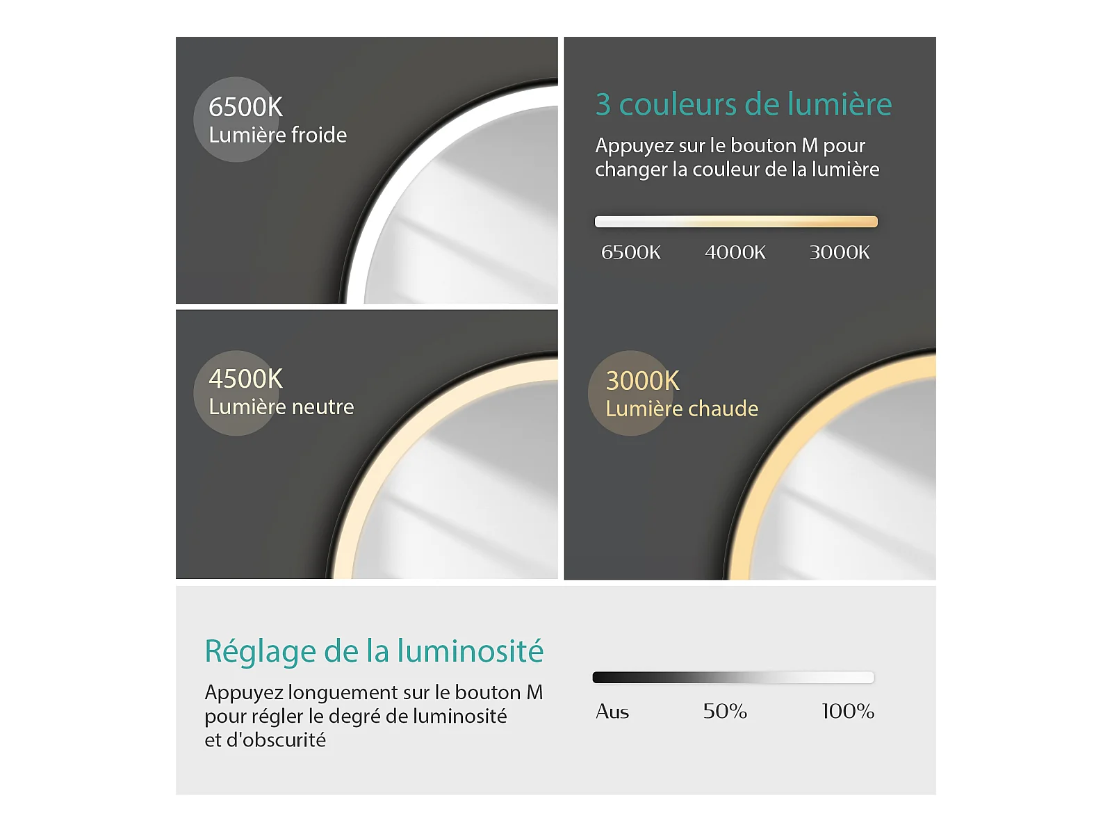 EMKE Specchio per bagno a LED ф70 cm Specchio per bagno luminoso con 3 colori di luce regolabili+Anti-appannamento, risparmio energetico