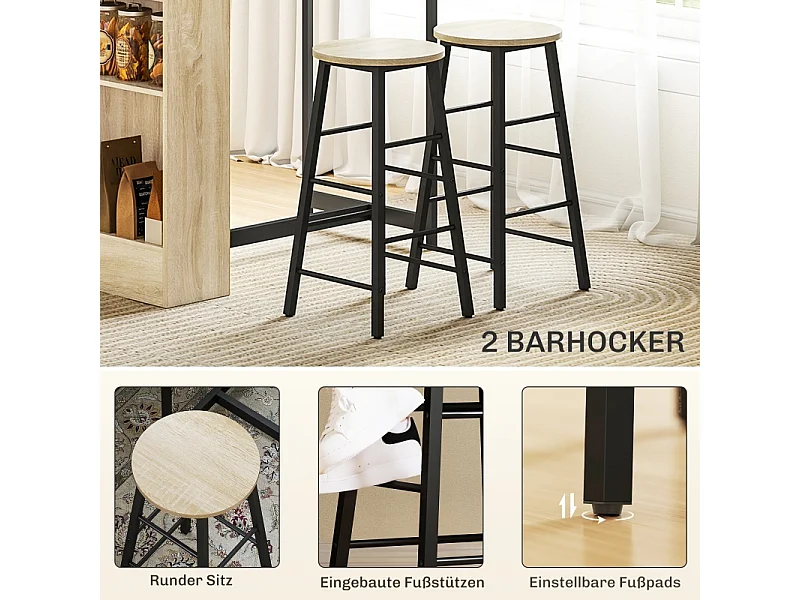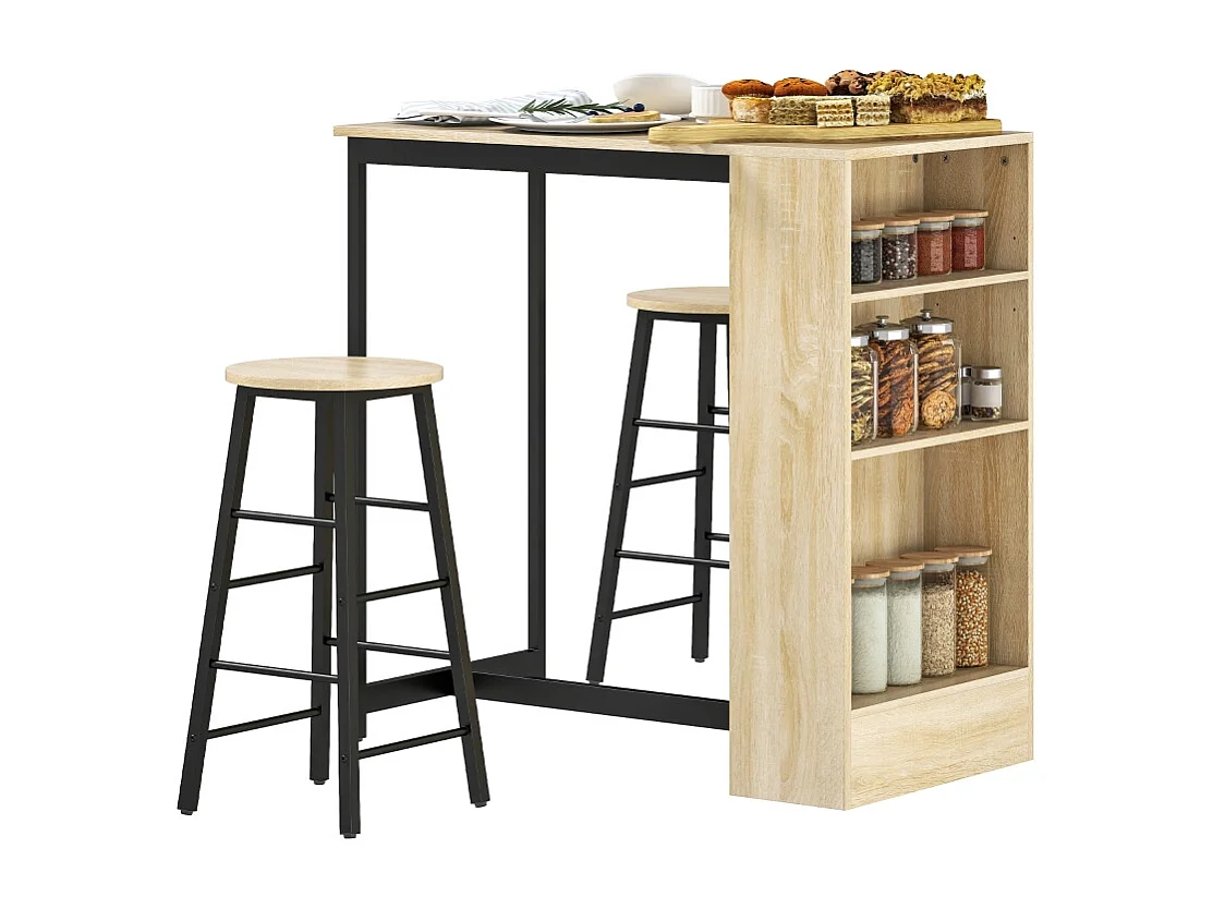 Ensemble bar 3 pezzi tavolo alto 91x49x91 cm + 2 tabourets métal noir bois chêne