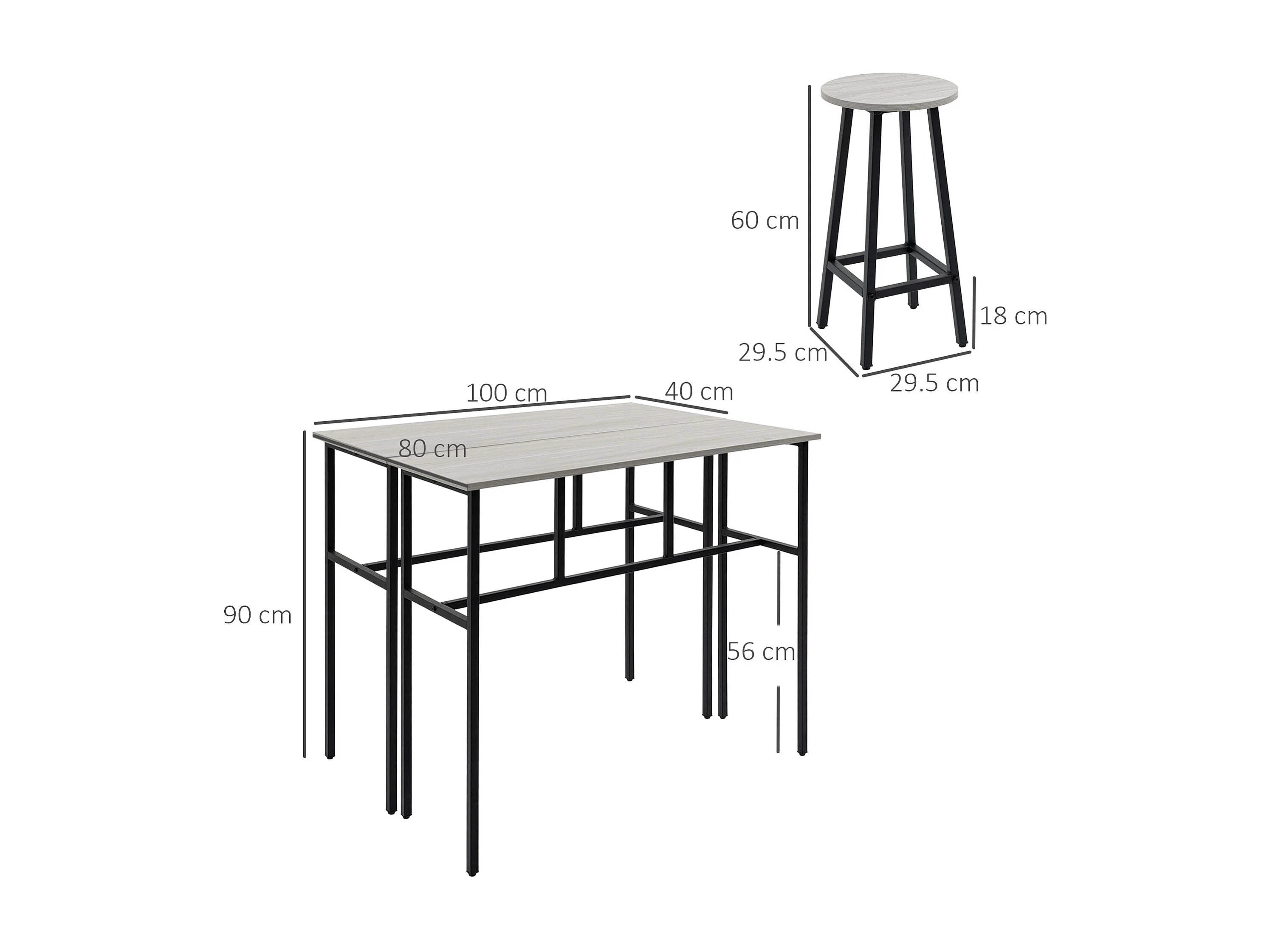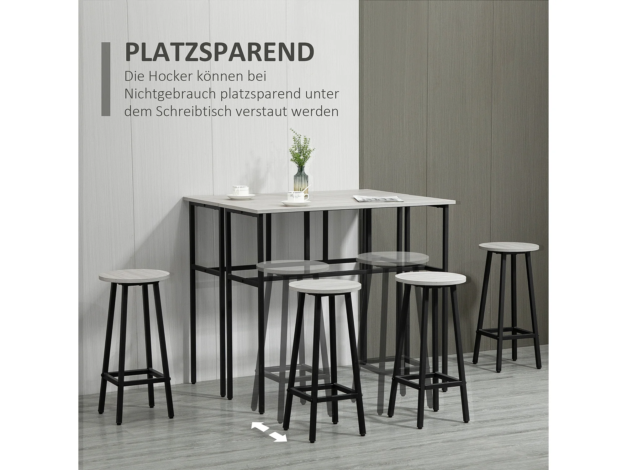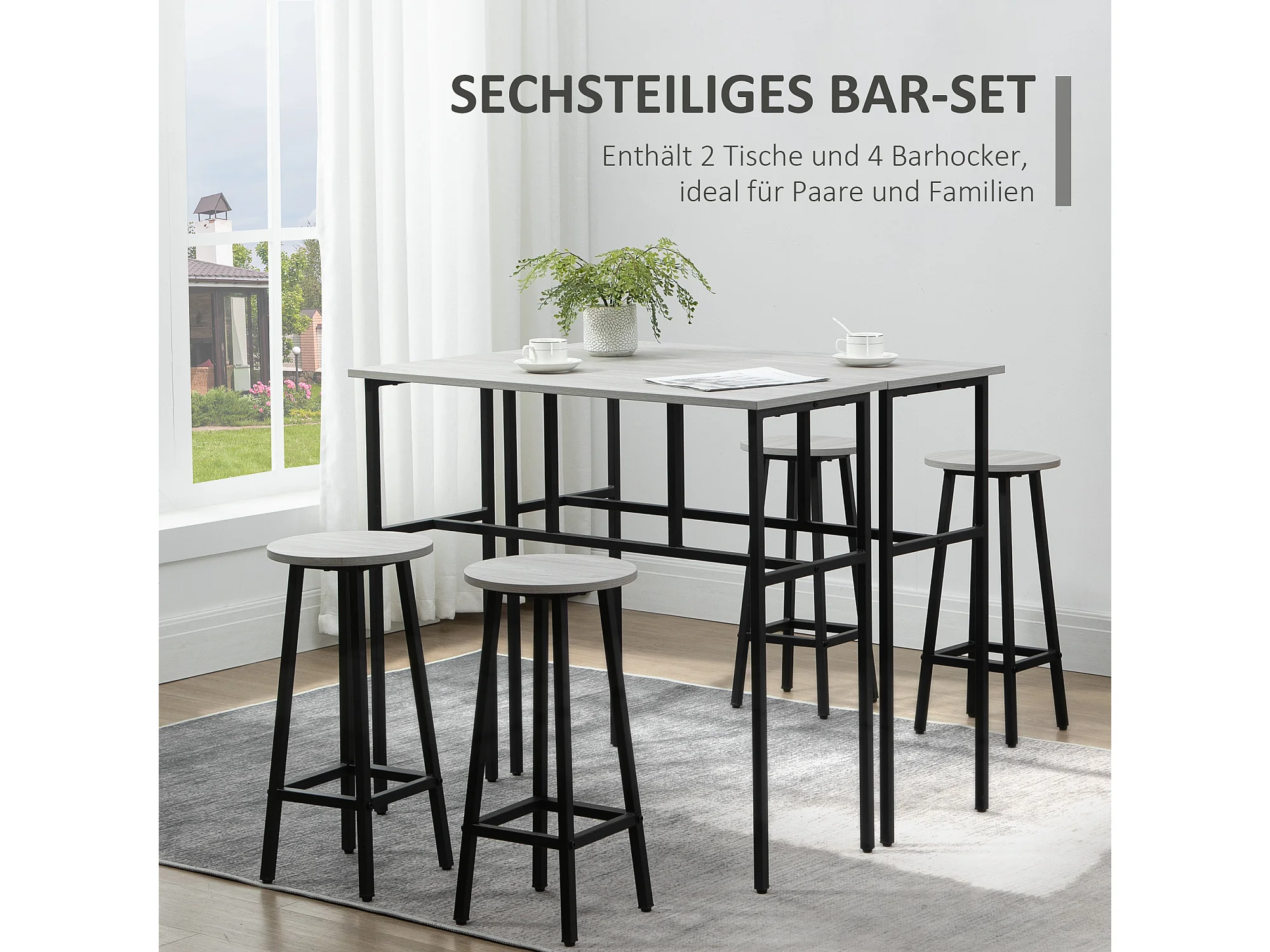 Ensemble bar 6 pezzi 2 tavoli MDF metallo 4 tabourets salone cucina gris noir