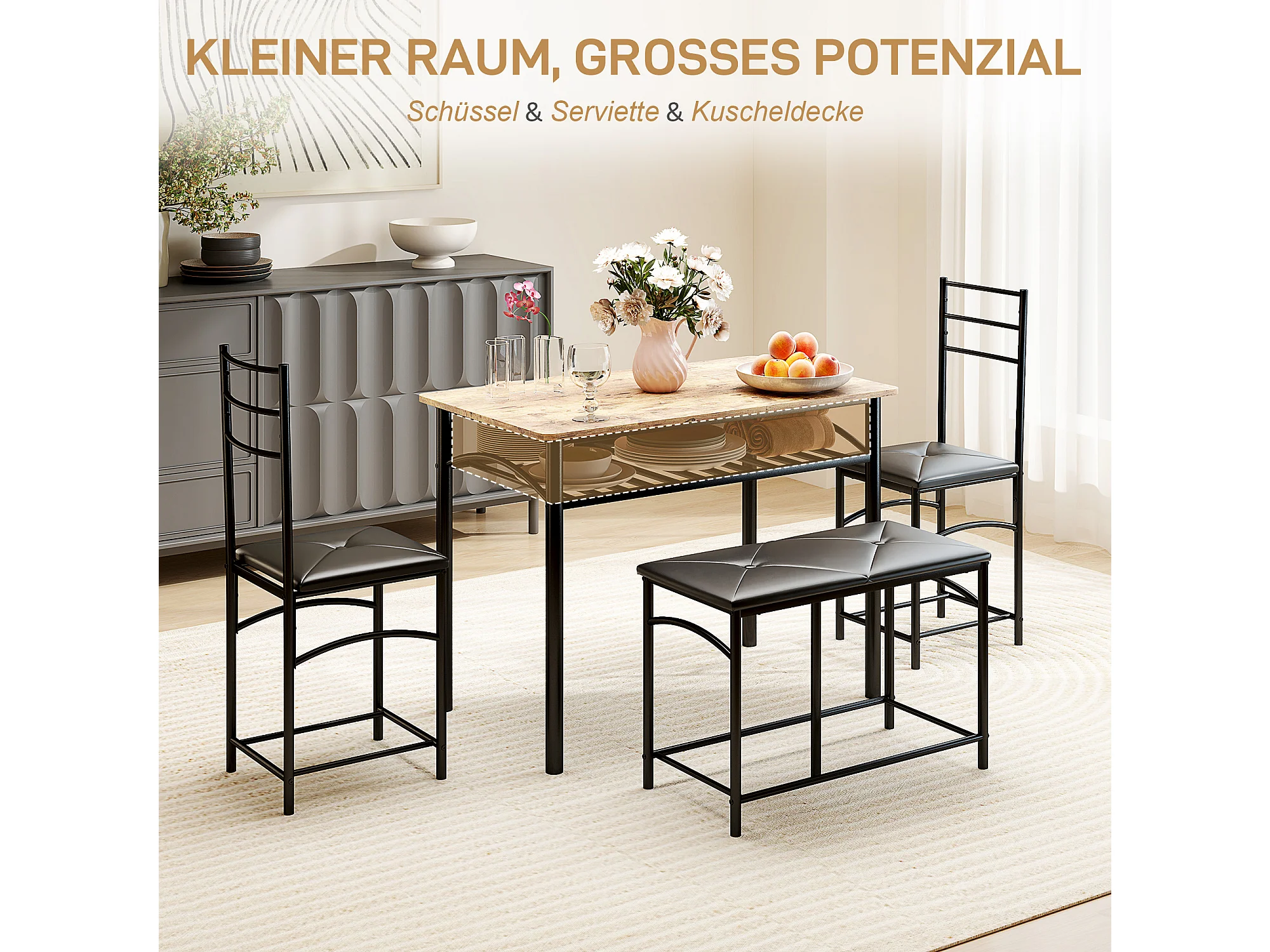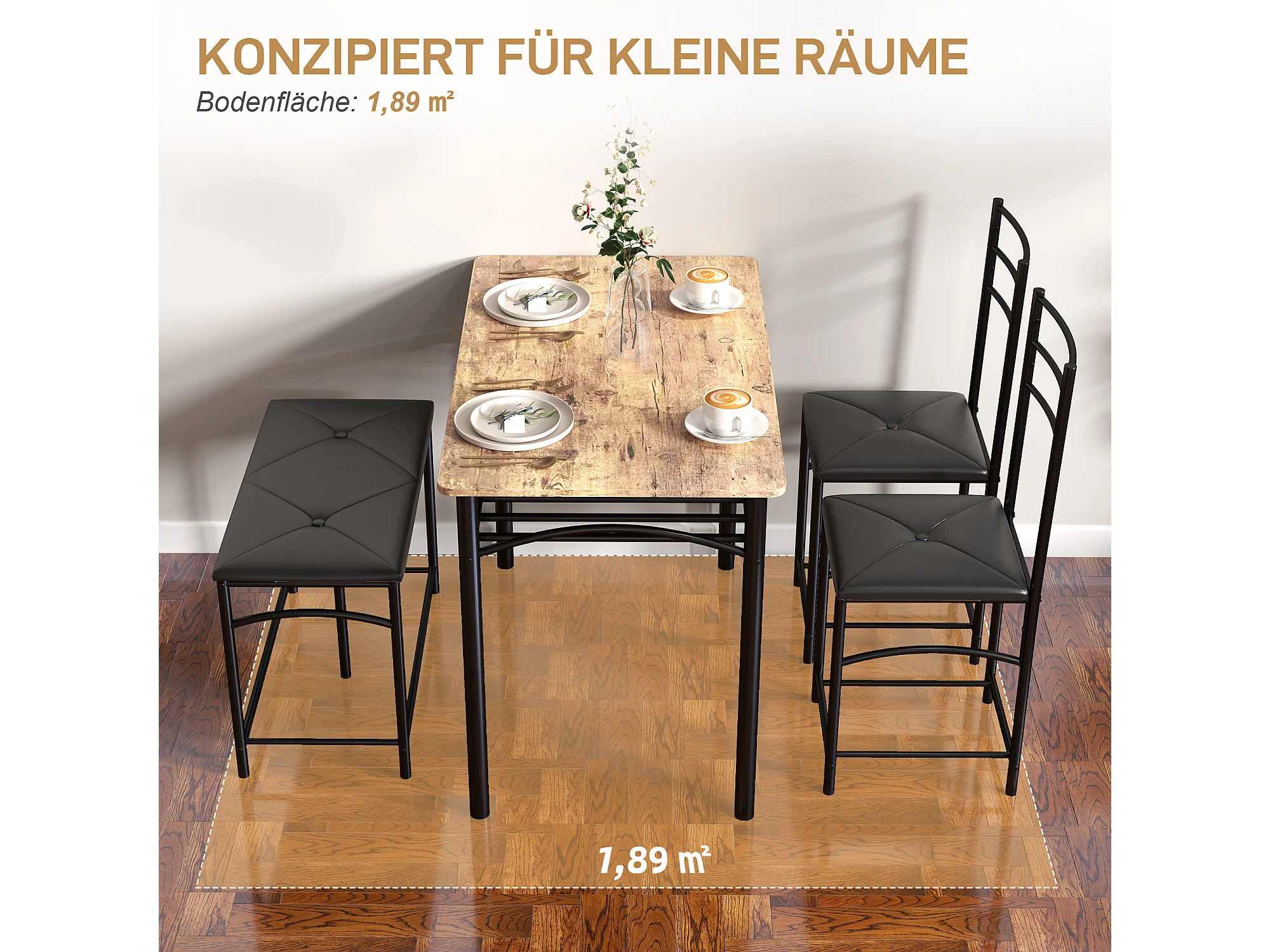Ensemble salle à manger 4 pezzi tavolo MDF metallo 2 sedie banc kitchen brun