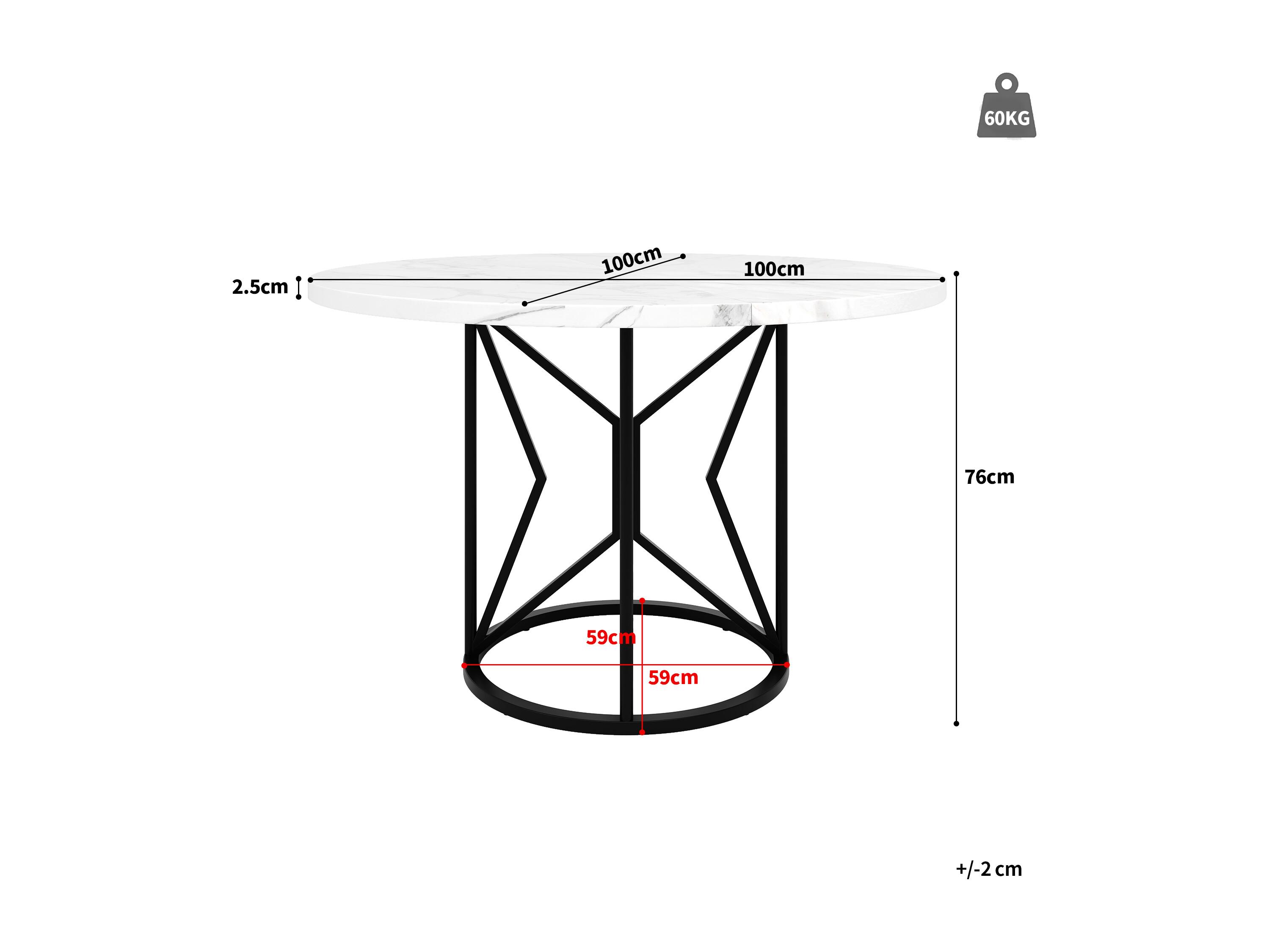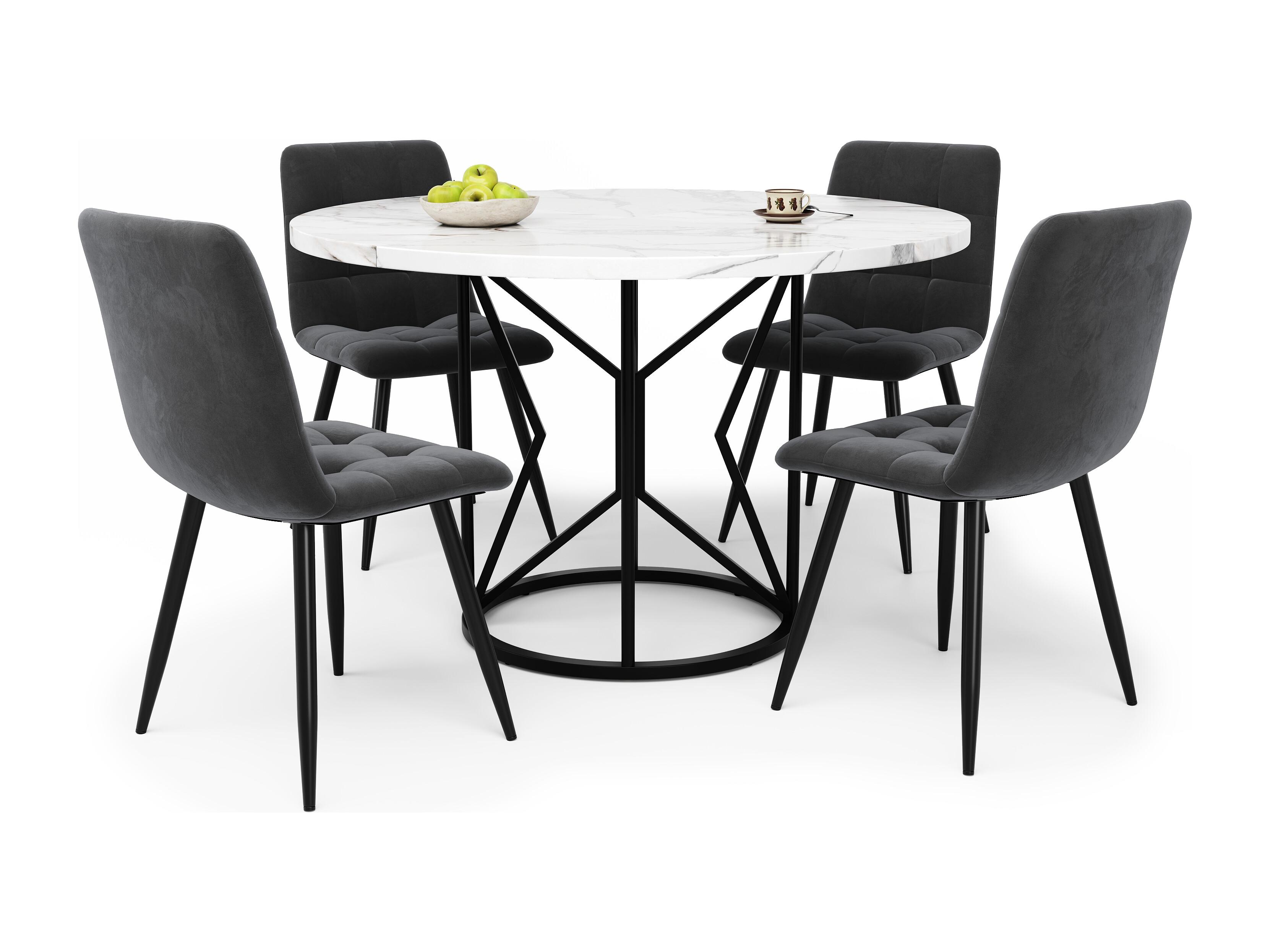 Tavolo rotondo100x100x76cm con 4 sedie - Piano in MDF, struttura in metallo e cuscini in velluto - Bianco&Nero
