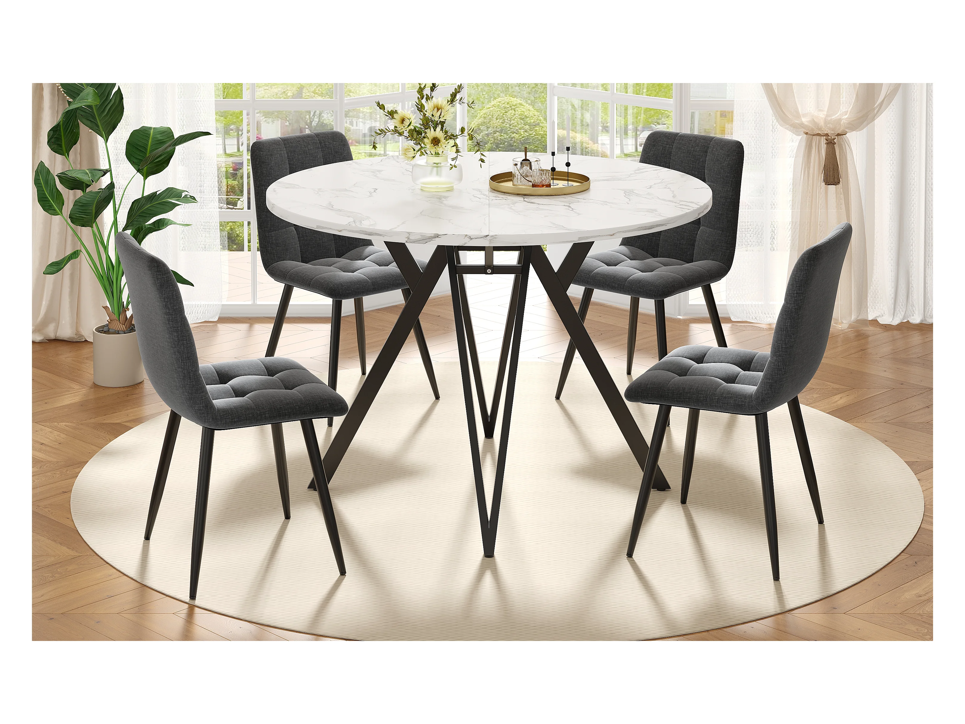 Ensemble salle à manger 5 pezzi tavolo rotondo MDF effetto marmo con 4 sedie tessuto grigio metallo nero