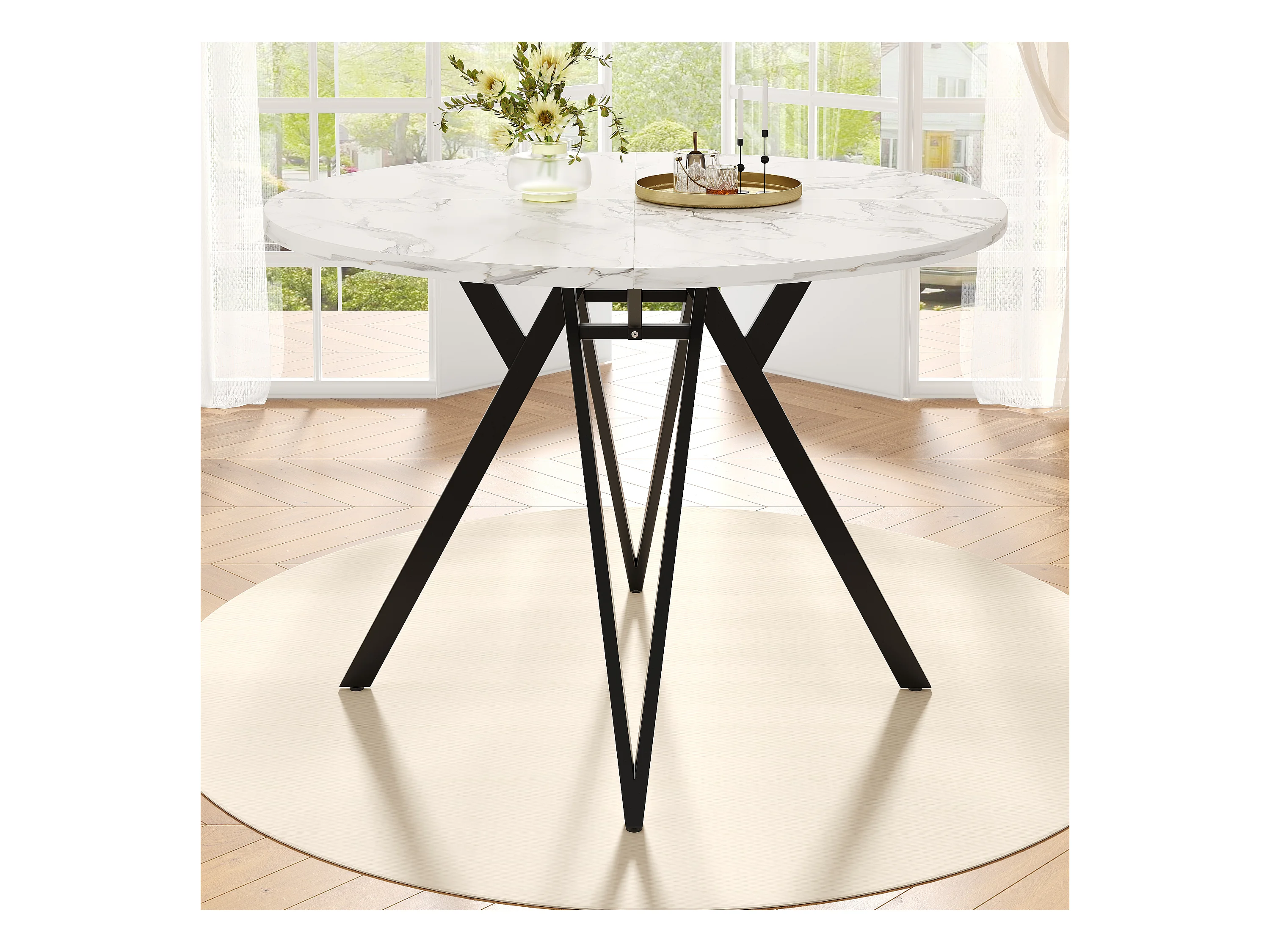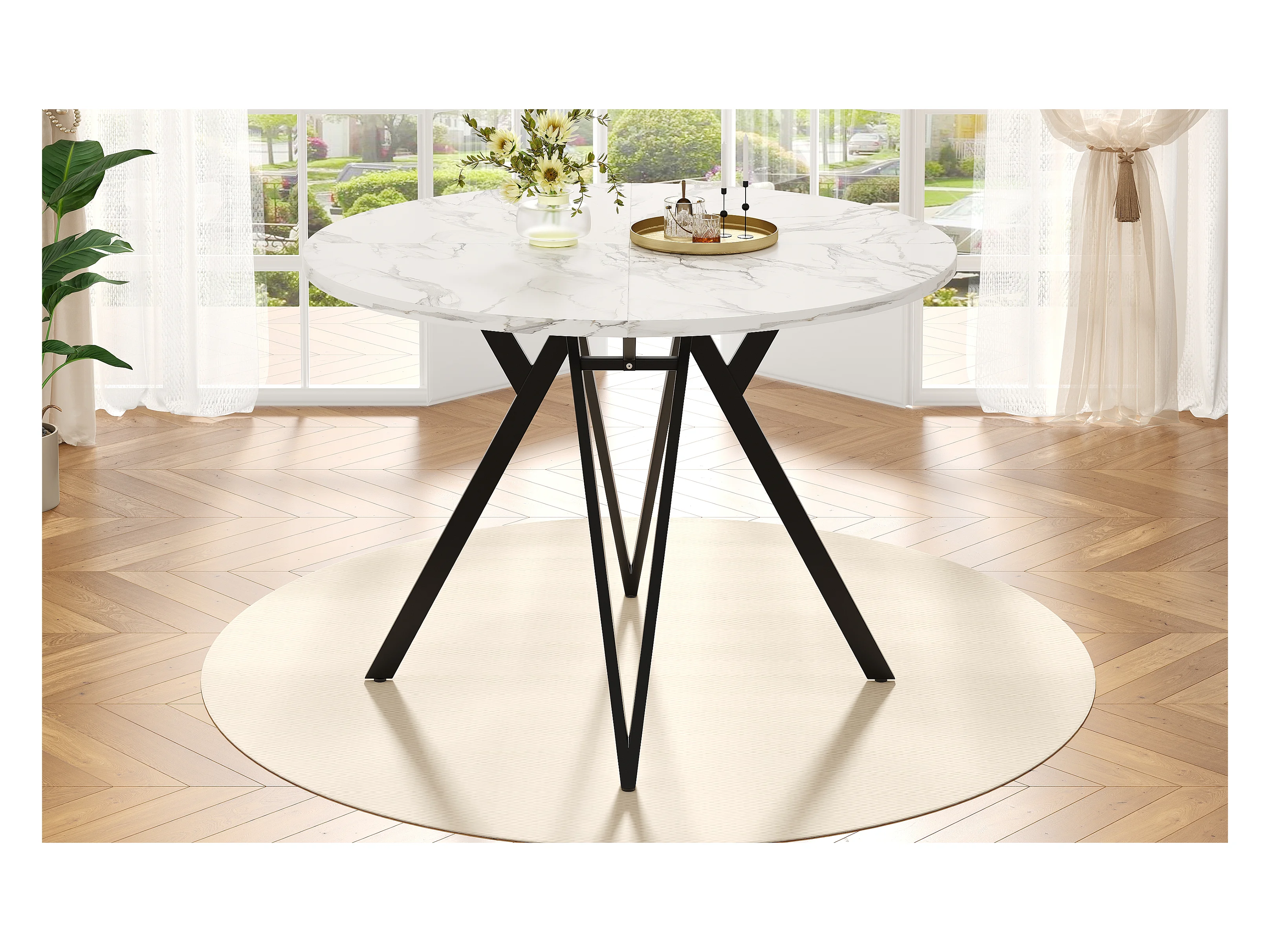 Ensemble salle à manger 5 pezzi tavolo rotondo MDF marmo 100 cm pieds métal noir chaises velours gris