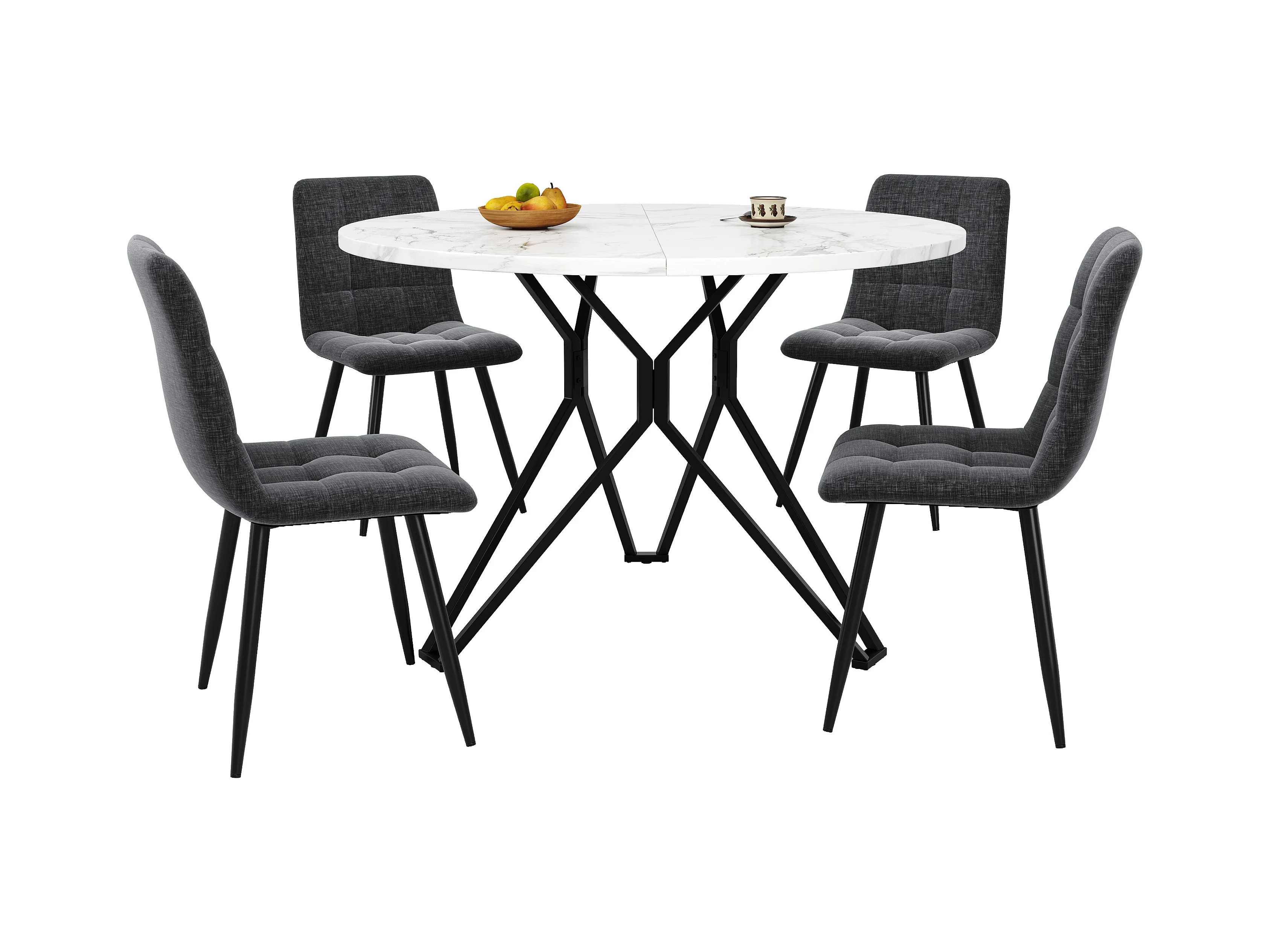 Ensemble salle à manger 5 pezzi tavolo rotondo MDF effetto marmo con 4 sedie tessuto grigio metallo nero
