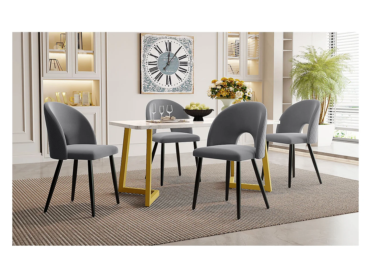 Set tavolo da pranzo 117 x 68 cm + 4 sedie a conchiglia - velluto e gambe in metallo - motivo a rombi - grigio