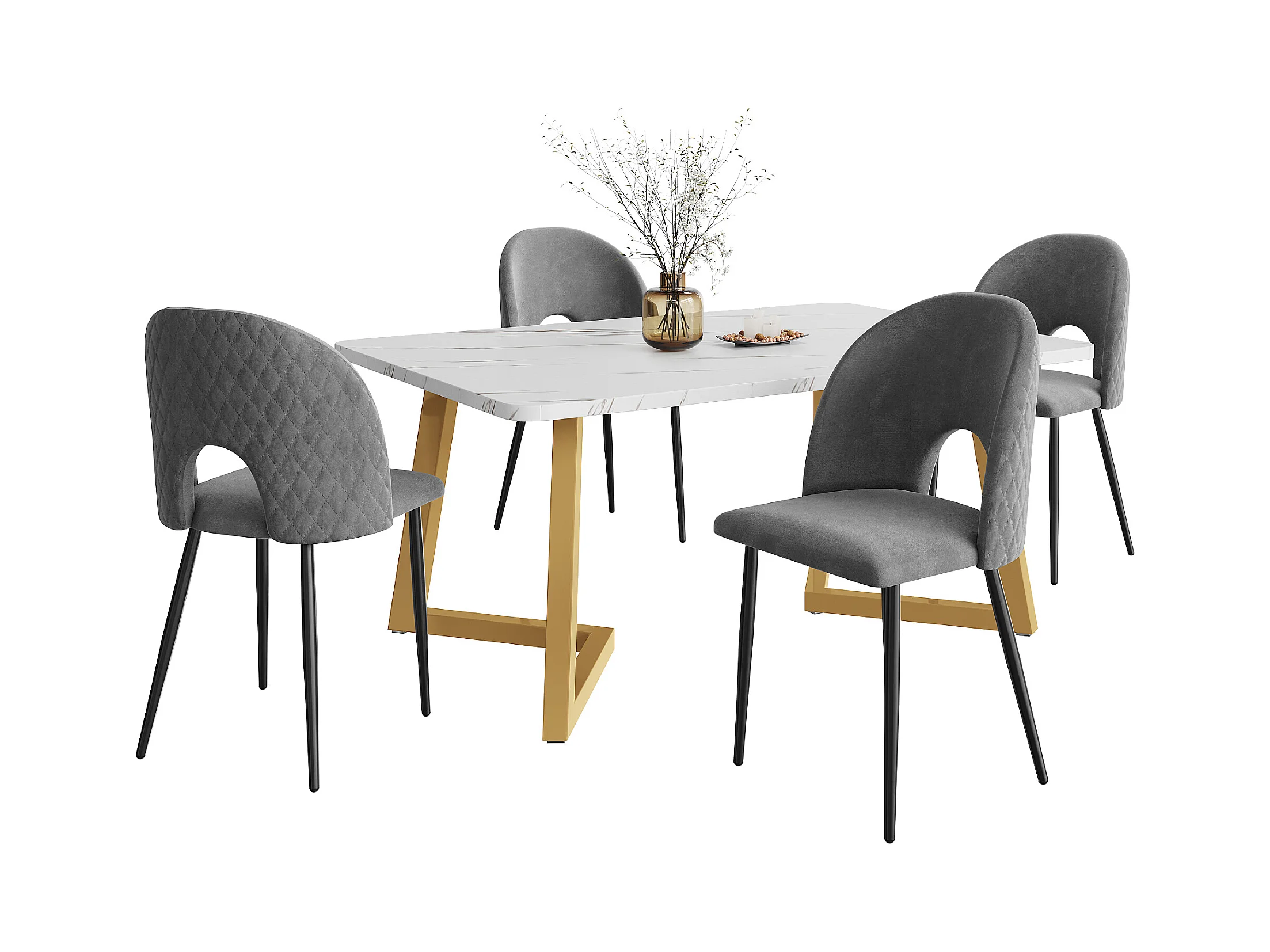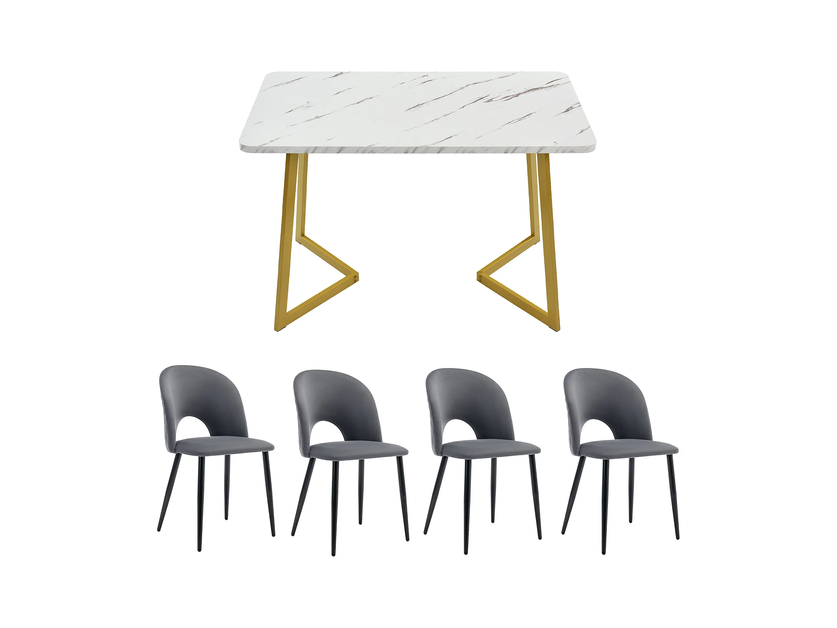 Ensemble Salle à Manger Tavolo 5 Pezzi 117×68 cm MDF Pieds Dorés Chaises Velours Gris Diamant