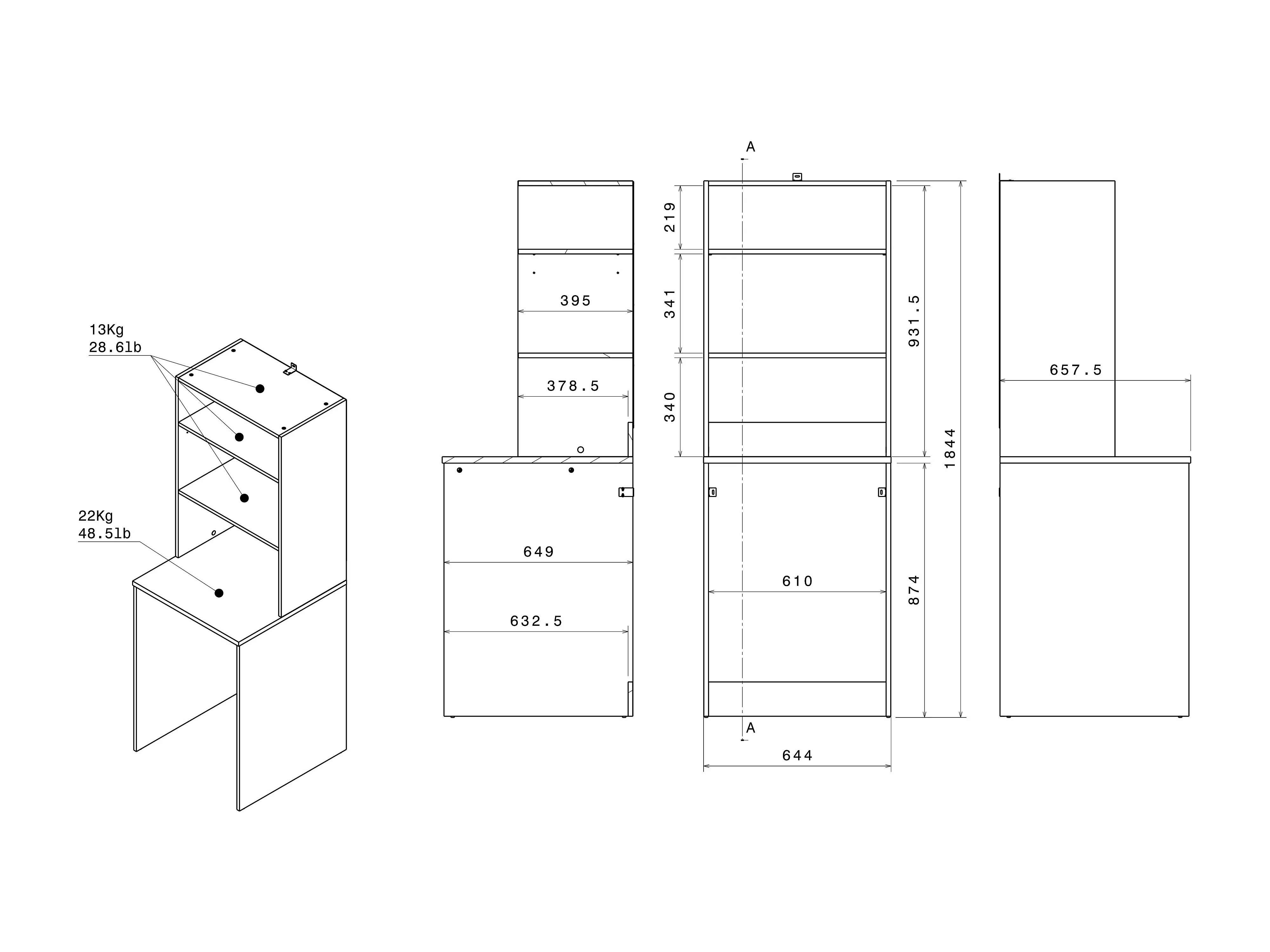 • Ripiano scorrevole integrato