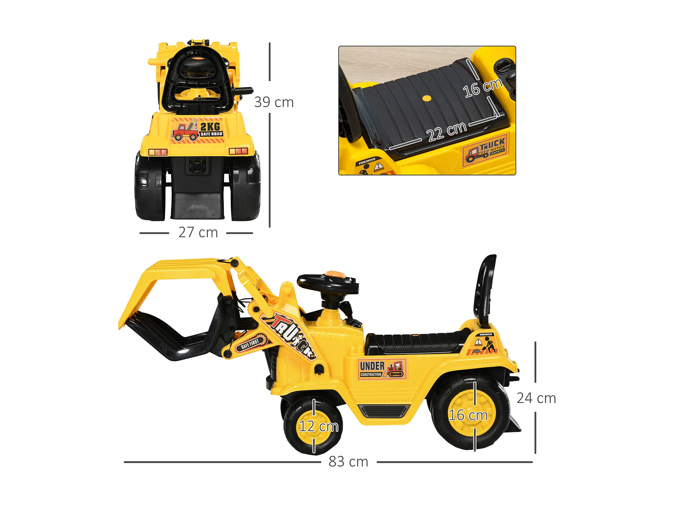 Escavatore a pedali bambini 2-4 anni con spazio portaoggetti
