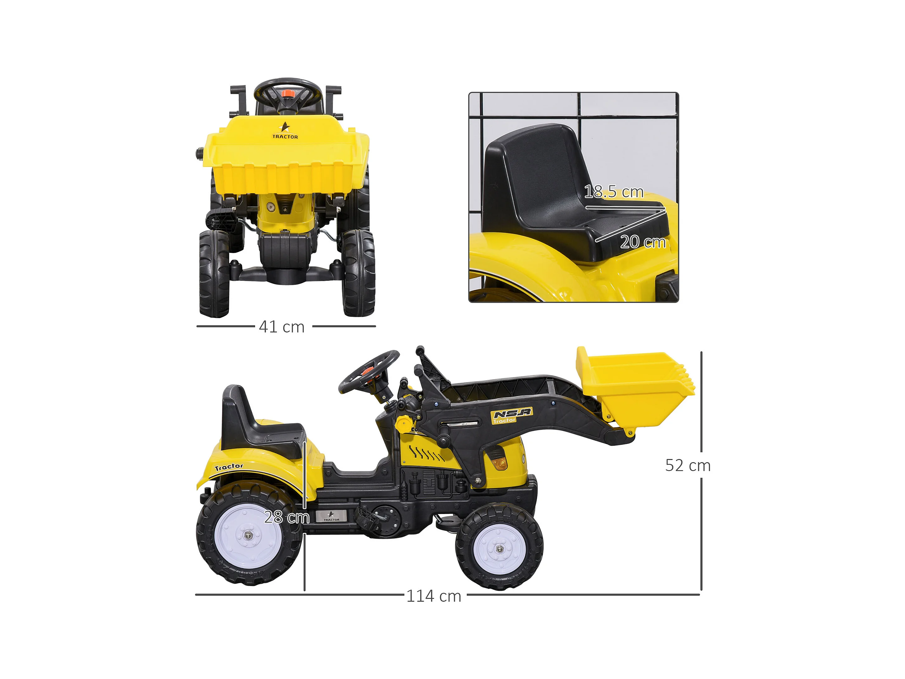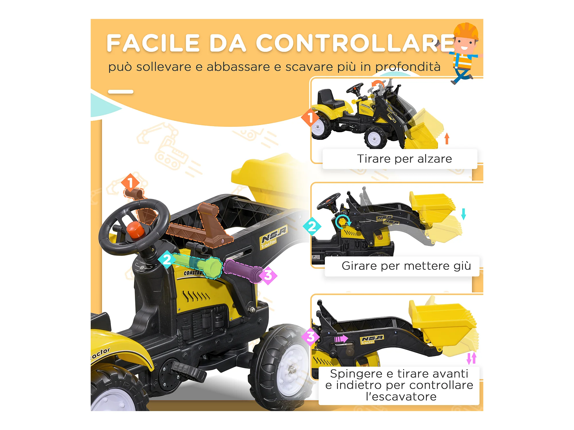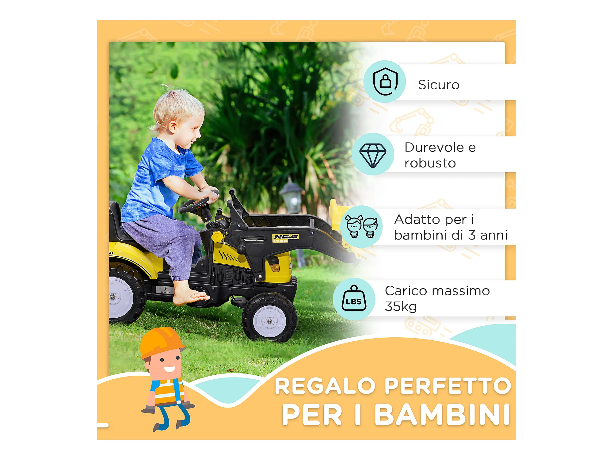 Escavatore a pedali per bambini con ruspa frontale giallo