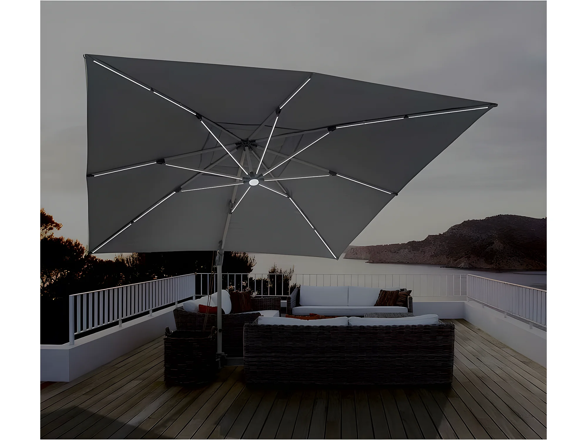 Estosa - Ombrellone da giardino Led 3x3 con braccio laterale Roma Light grigio