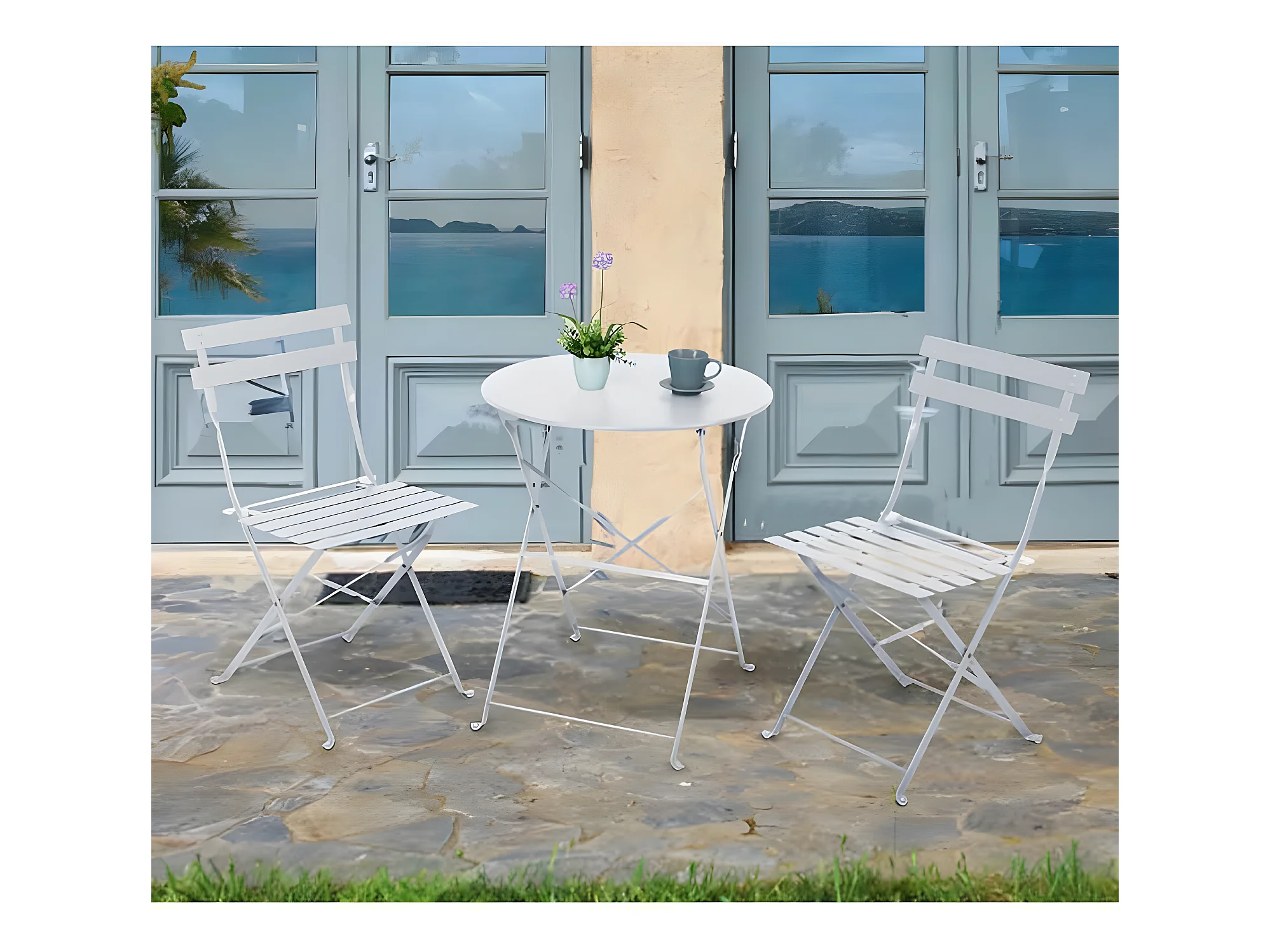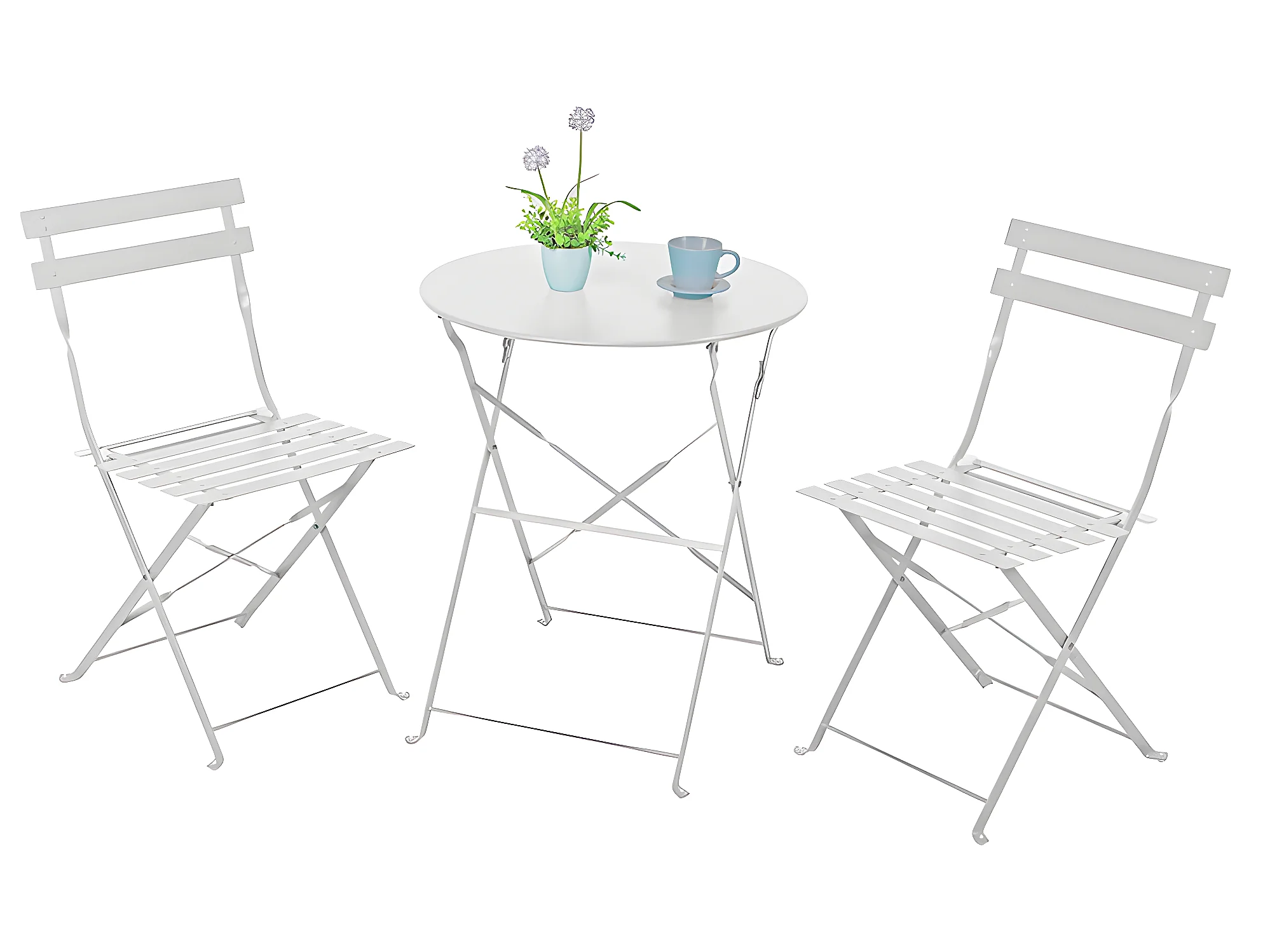 Estosa - Set tavolino e sedie da esterni in acciaio richiudibili Dalia bianco