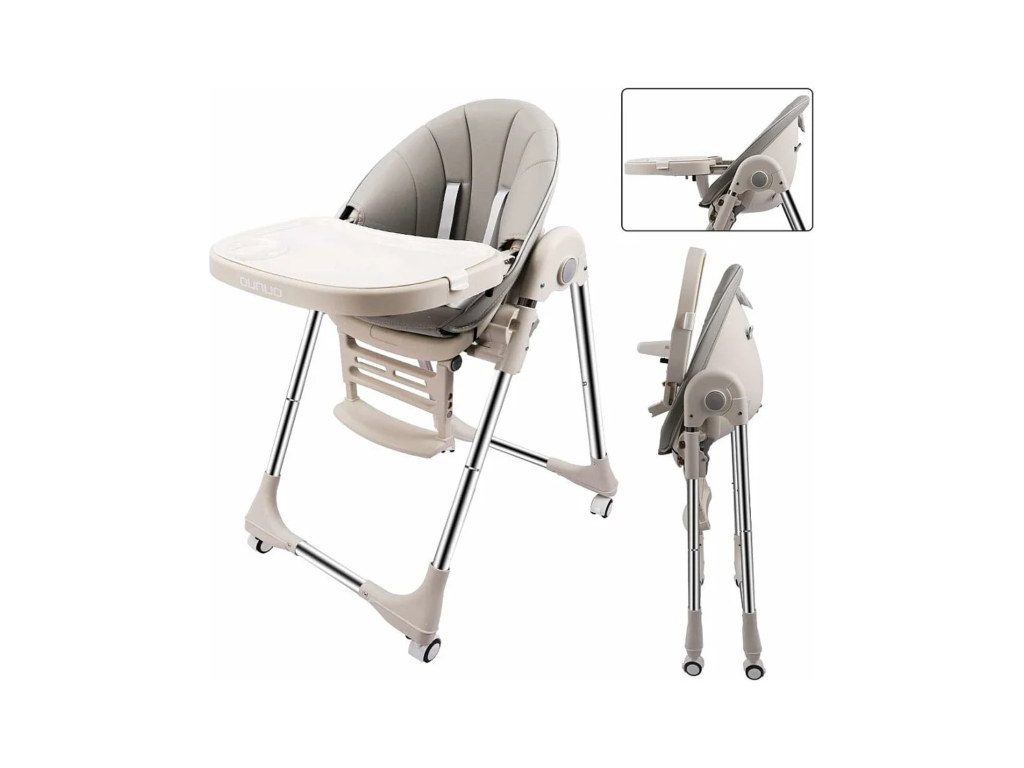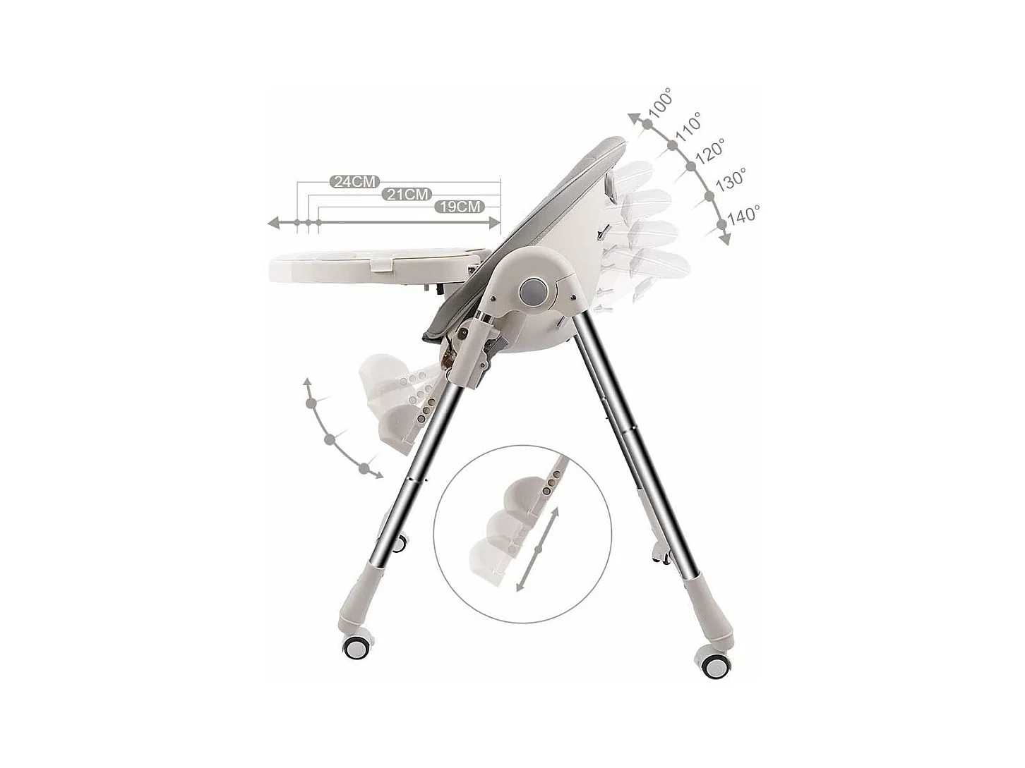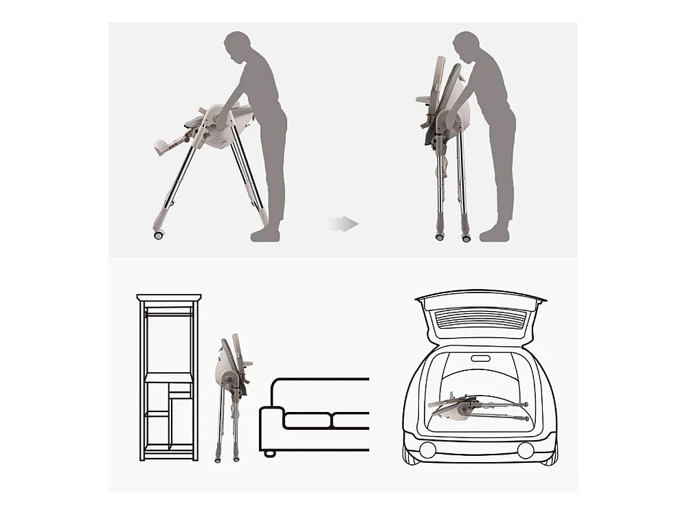Evolutiva sedia per bambini pieghevole, la sedia da bambino regolabile per bambini, facile pulizia, con ruote, grigio