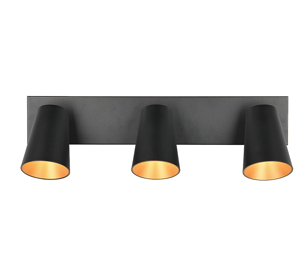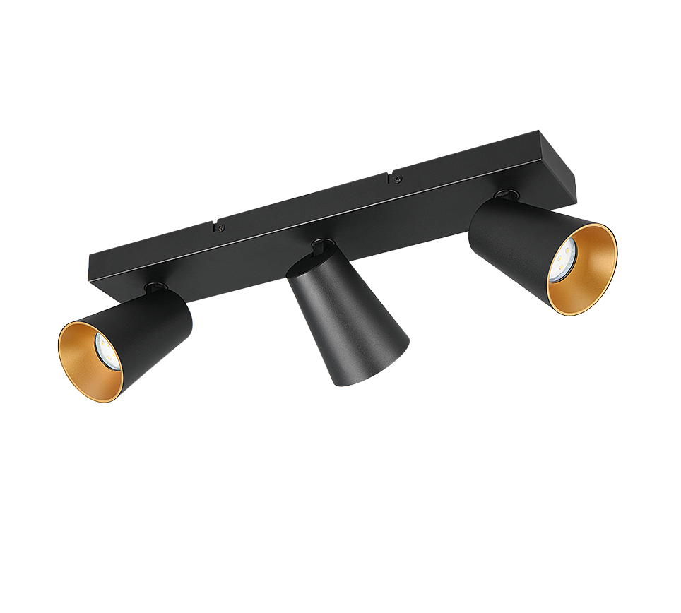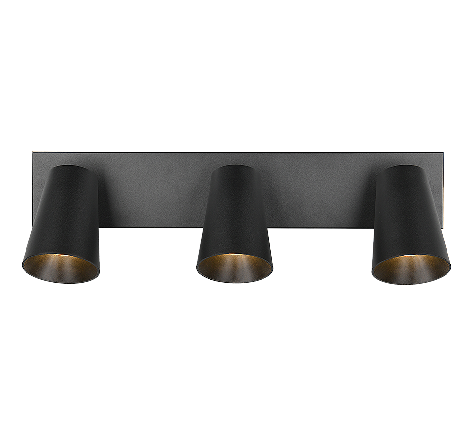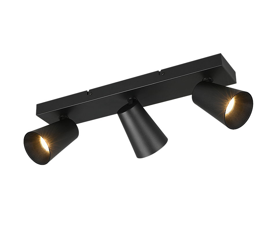Faretto 3 luci, metallo, nero opaco, 46x16x8,5 cm, Sharp