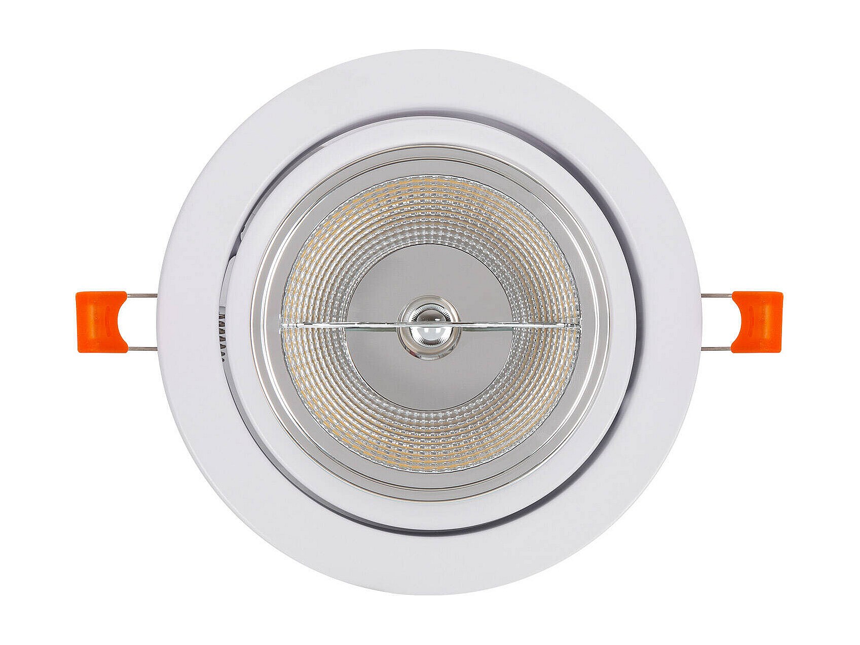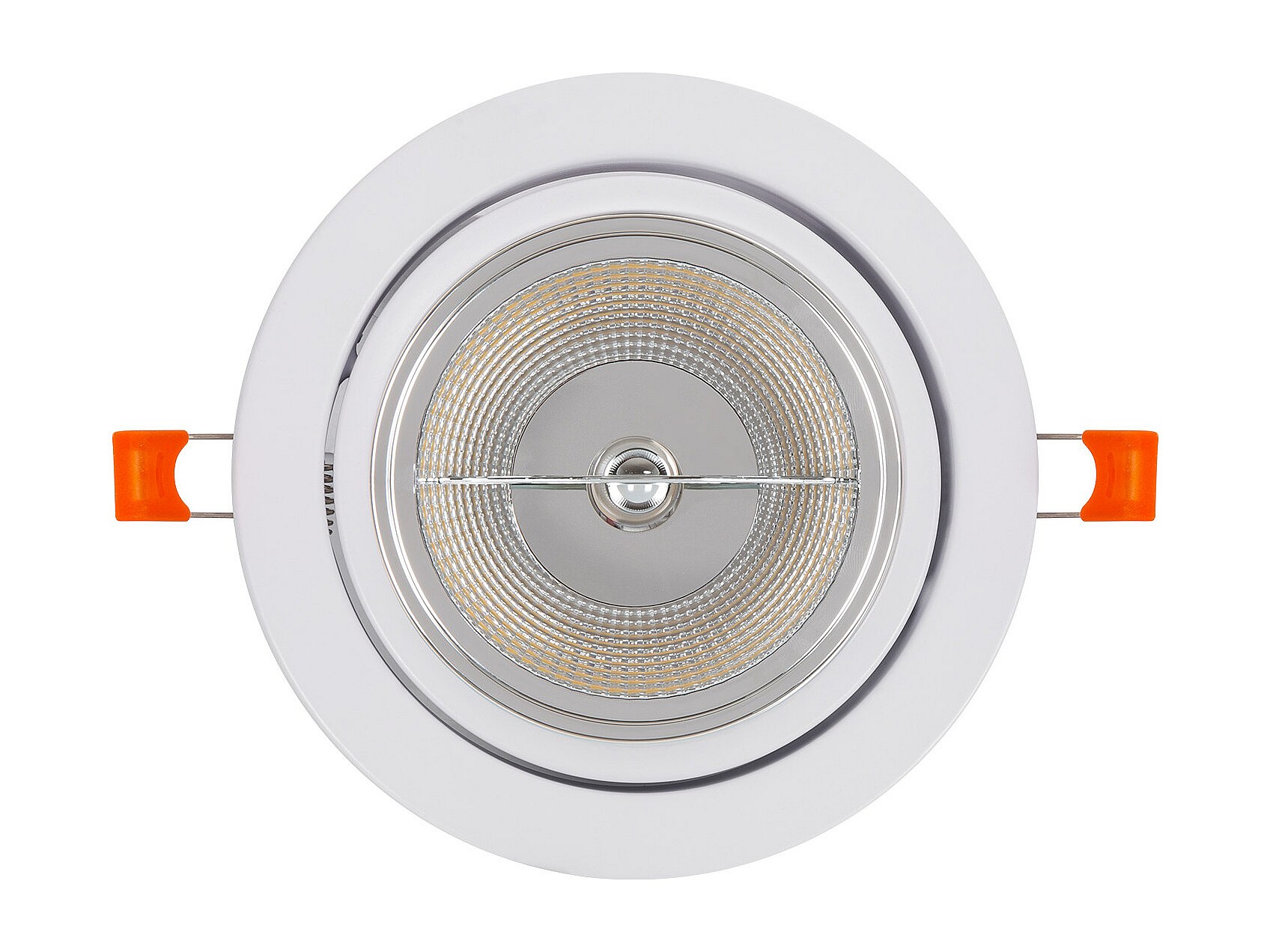 Faretto Downlight LED 12 W Orientabile Circolare AR111 Foro Ø120 mm No Flicker 3000K Bianco Caldo