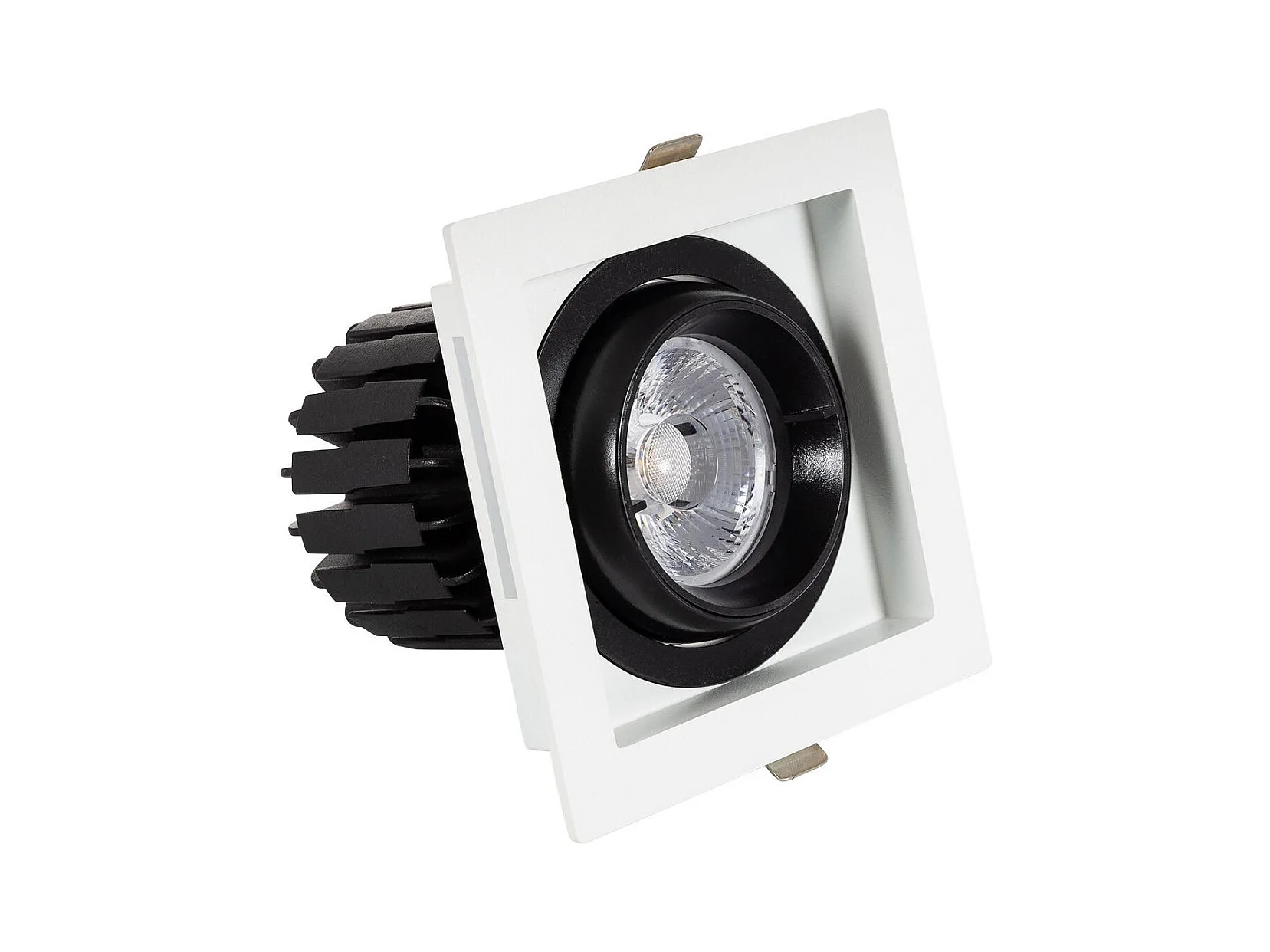 Faretto Downlight LED 12W COB Orientabile 360º Quadrato Foro 100x100mm CRI90 Expert Color No Flicker No Flicker 4000K Bianco Naturale