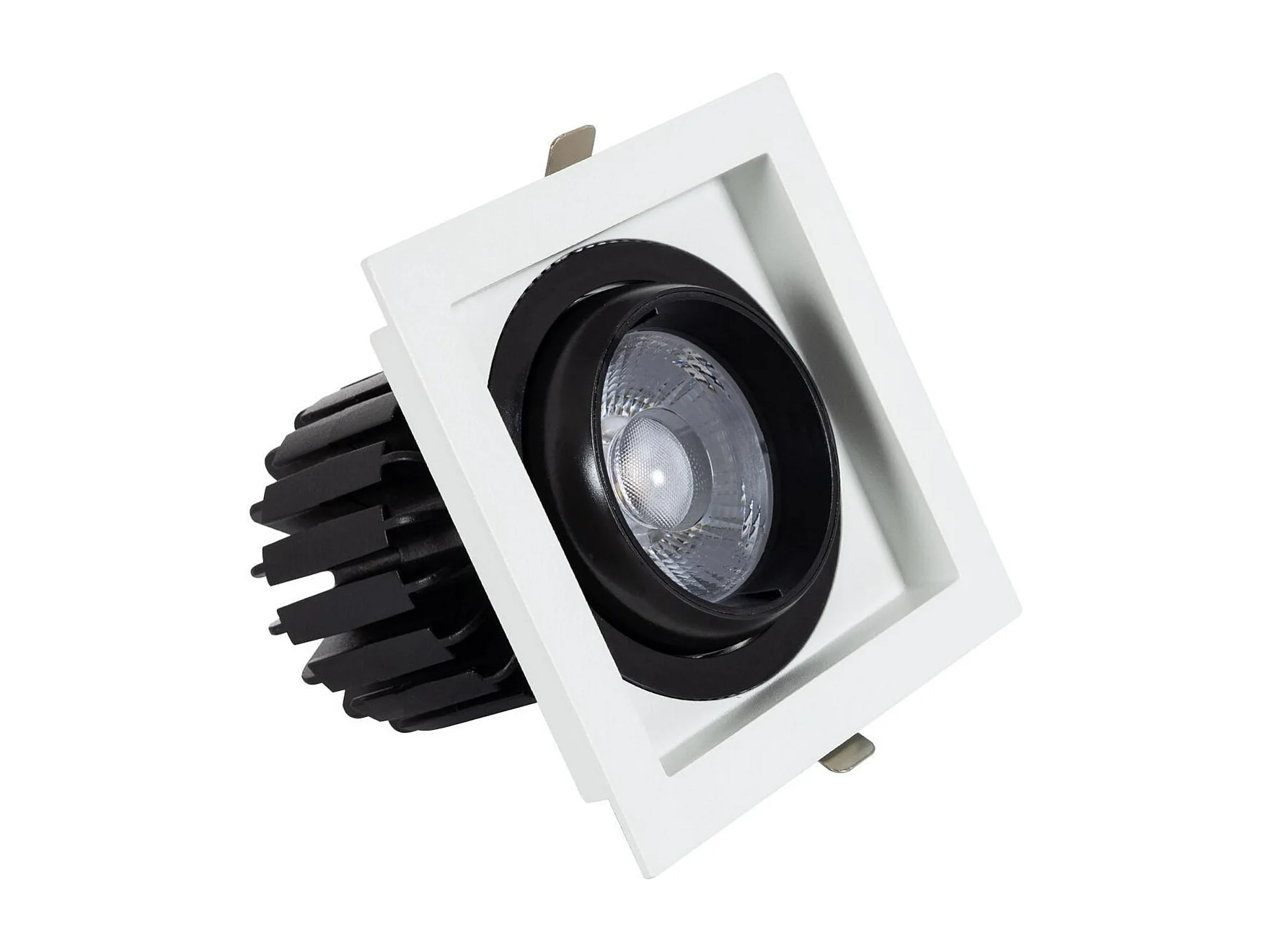 Faretto Downlight LED 18W COB Orientabile 360º Quadrato Foro 125x125mm CRI90 Expert Color No Flicker No Flicker 3000K Bianco Caldo