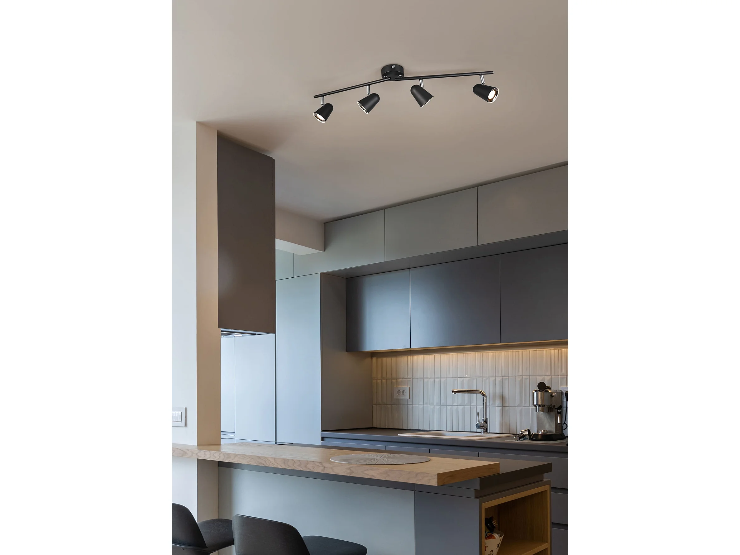 Faretto LED 4 luci, plastica, nero opaco, 78x17x9 cm, Toulouse