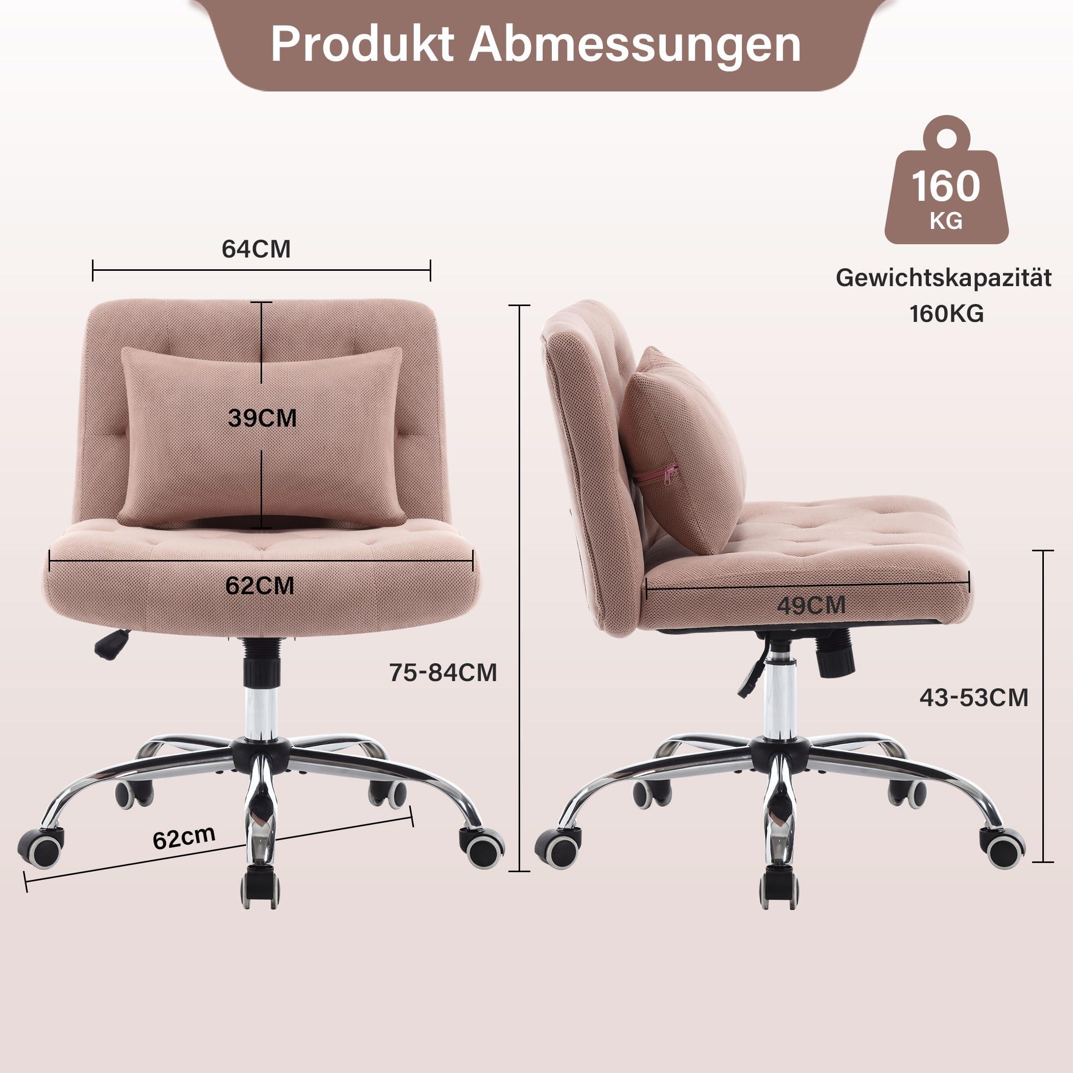 Fauteuil Bureau sans accoudoirs tissu lin ergonomique pivotant 160 kg pour chambre