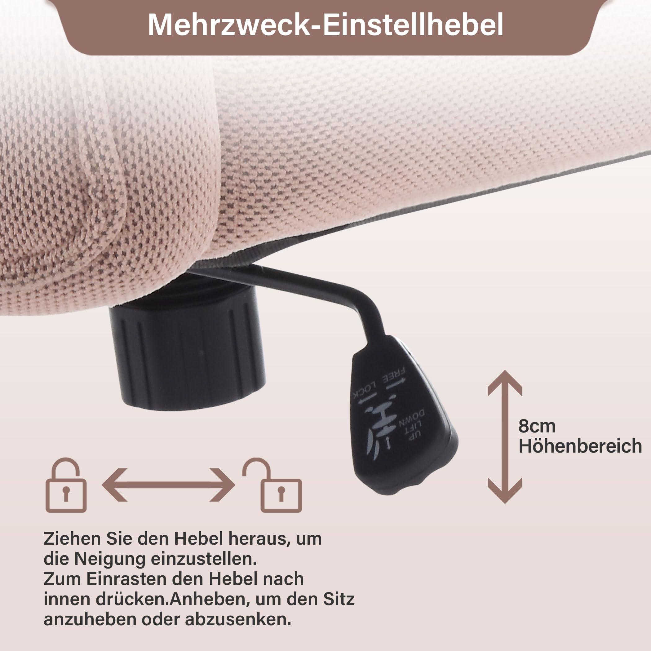 Bureau fauteuil ergonomico in tessuto con 7 punti di massaggio, siège inclinabile, regolabile, rosa