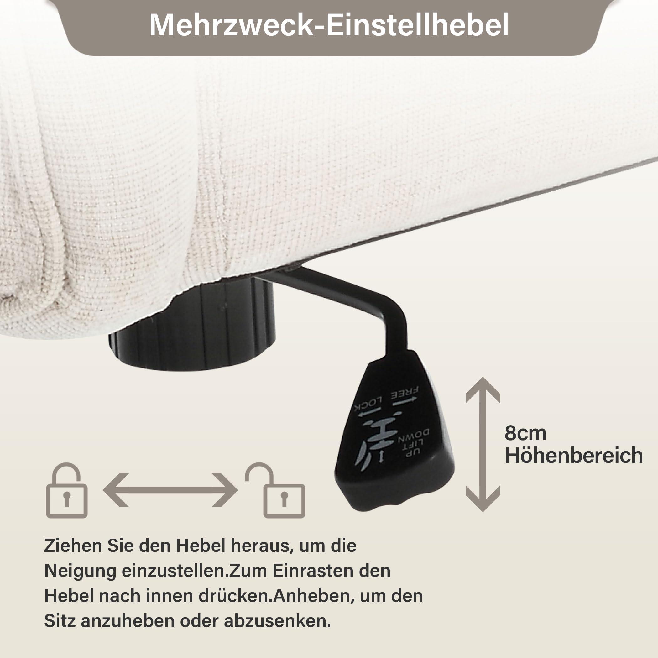 Chaise de Bureau ergonomica con massaggio 6 punti, pivotante, con repose-pieds, crema