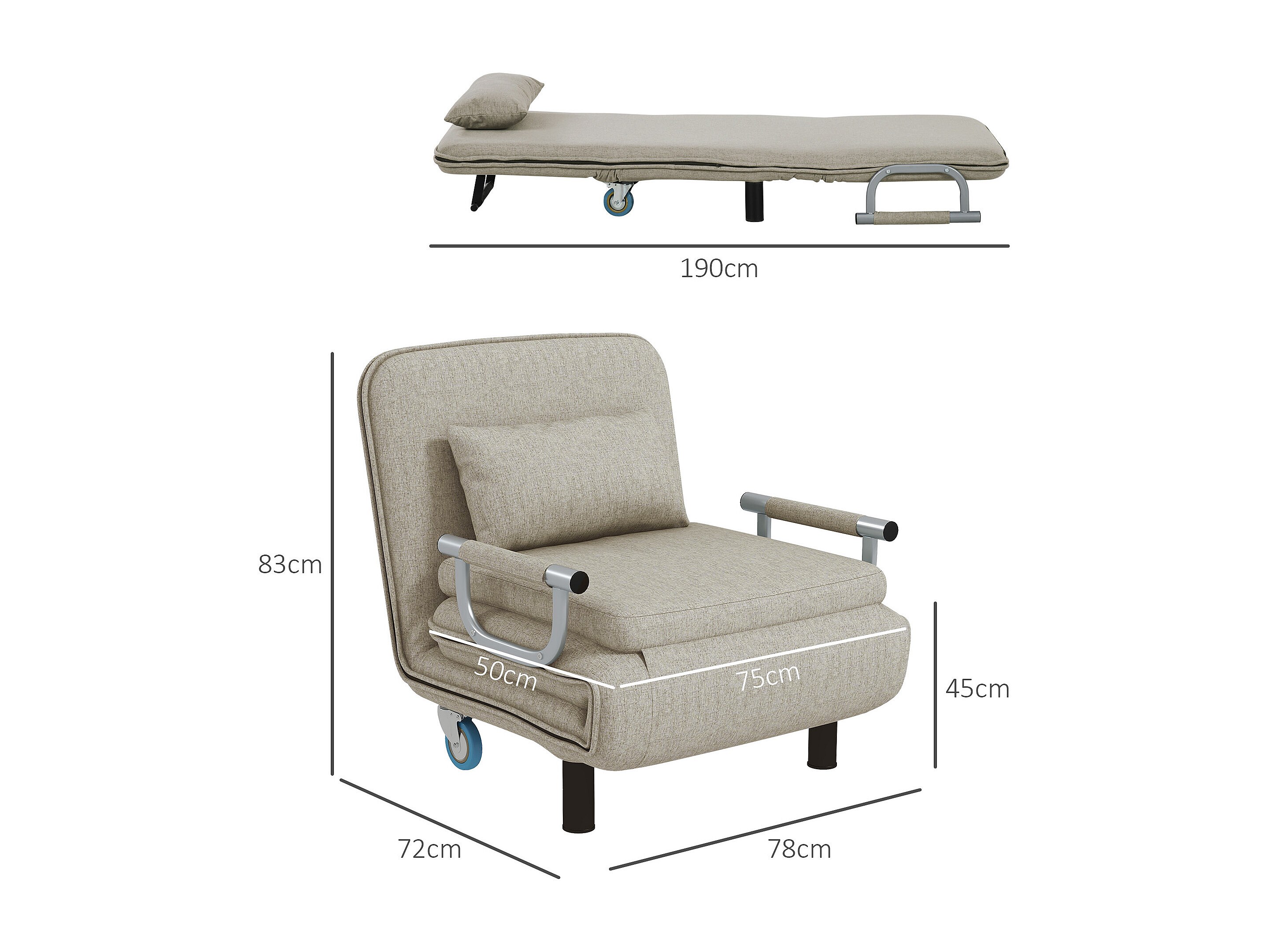 Fauteuil convertibile 3-en-1 tissu lin avec fonction lit salon gris 78x72x83cm