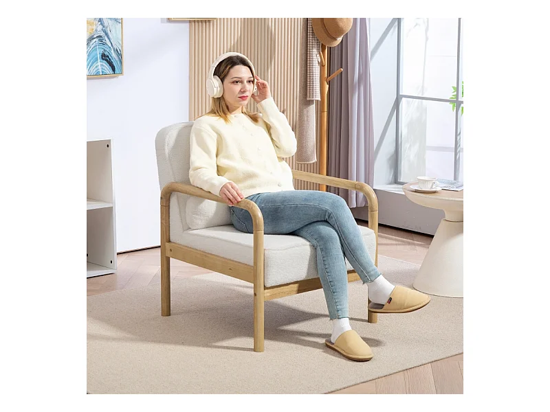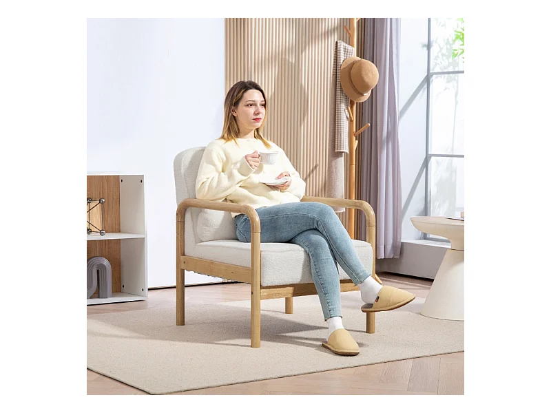 Fauteuil lounge bouclé con accoudoirs siège large rembourré pour salon chambre blanc