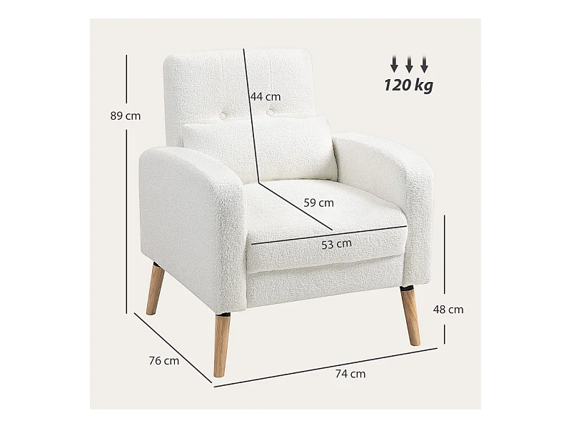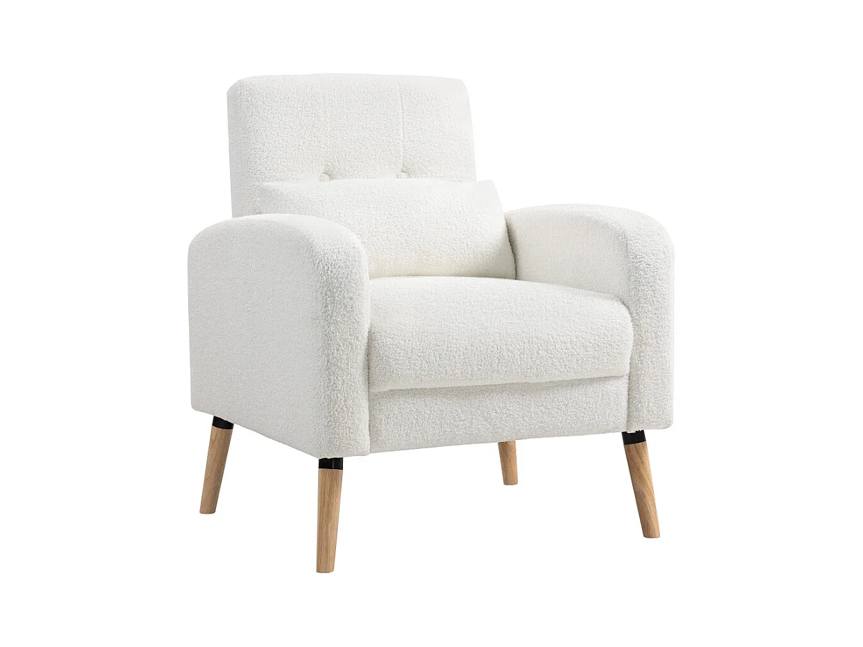 Fauteuil lounge Fleece con coussin lombaire siège rembourré pour salon chambre blanc