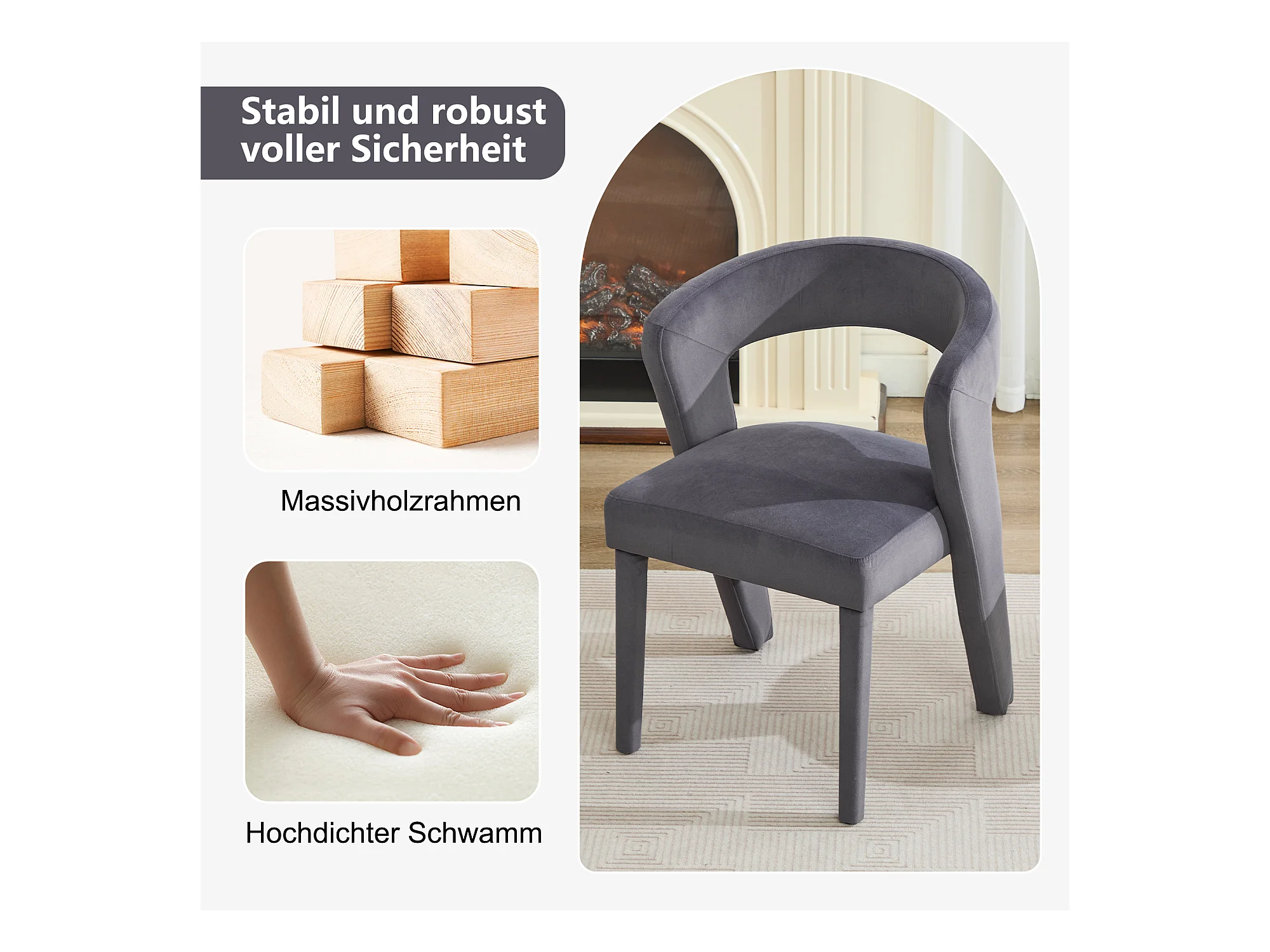 2x Fauteuil lounge velours gris 59x60x79 cm siège confortable salon chambre Bureau