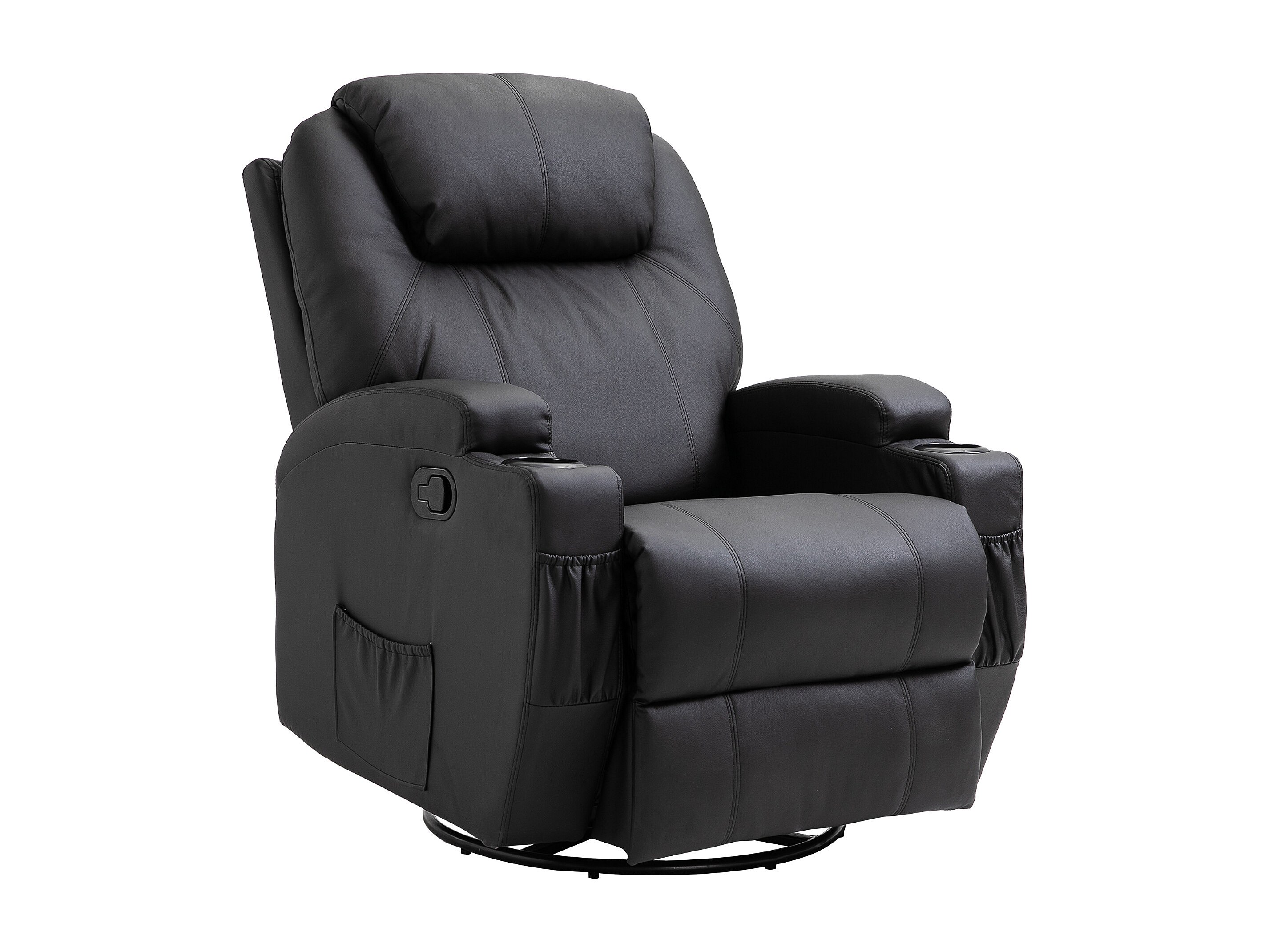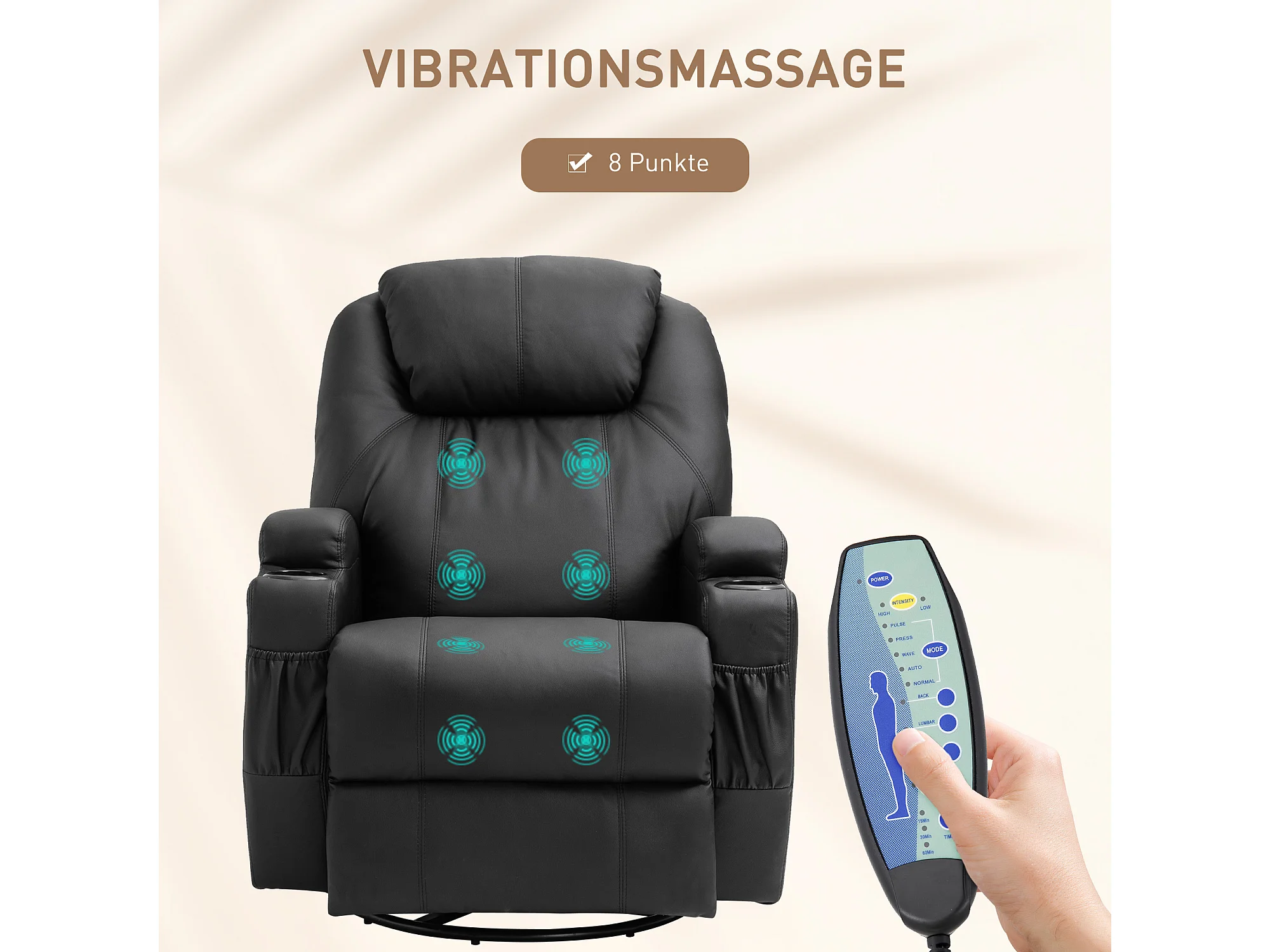 Fauteuil Relax Massant con Chauffage et Repose-Pieds, Pivot 360°, PU, Salon et Bureau, Noir