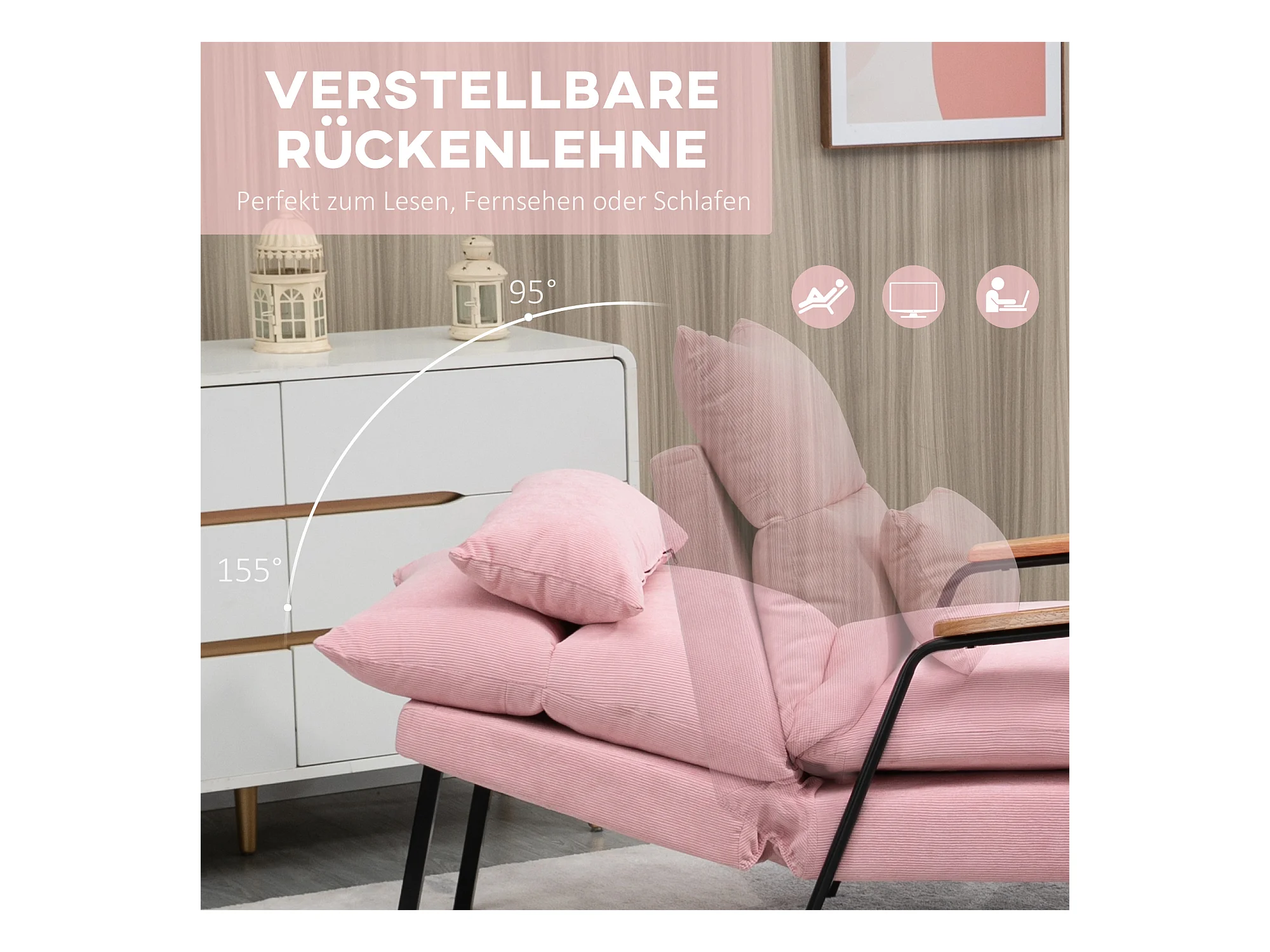 Fauteuil oreille avec repose-pieds tissu inclinabile relax salon chambre rose 68x91,5x88 cm