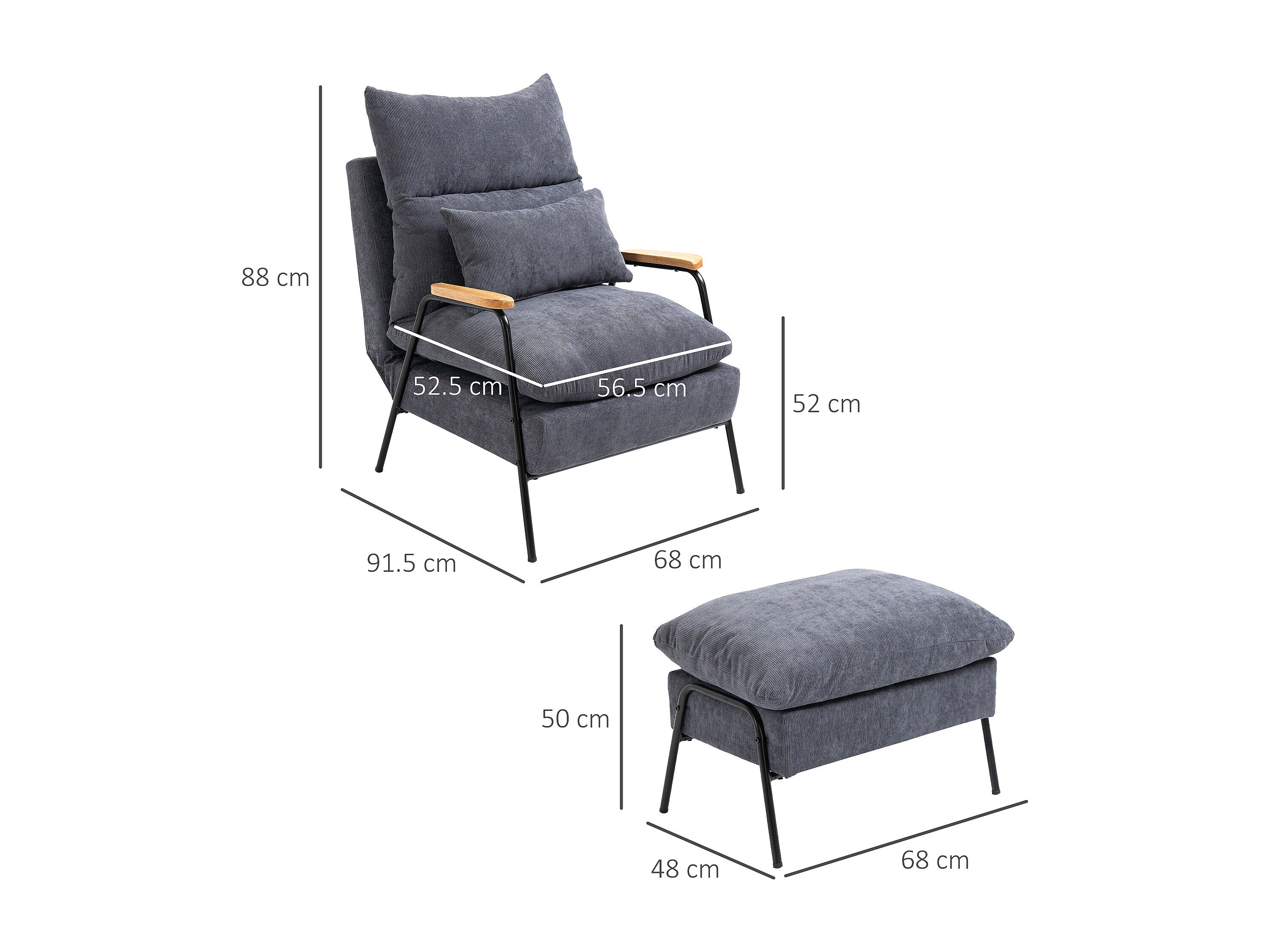 Fauteuil oreiller avec ottomane tissu gris inclinabile 95-155° 68x91,5x88 cm