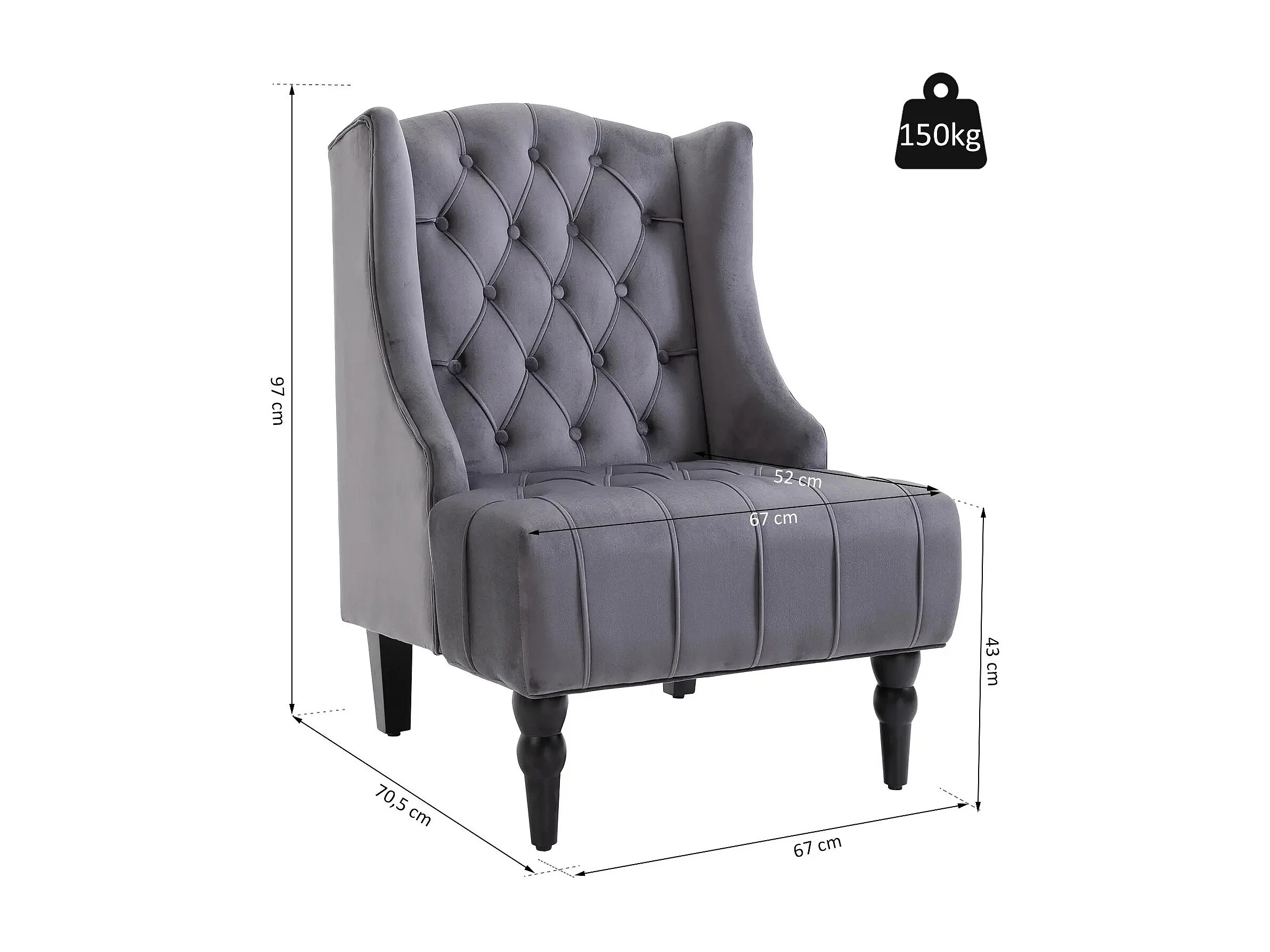 Poltrona 0,75x1,05x0,83 m grafite Messico