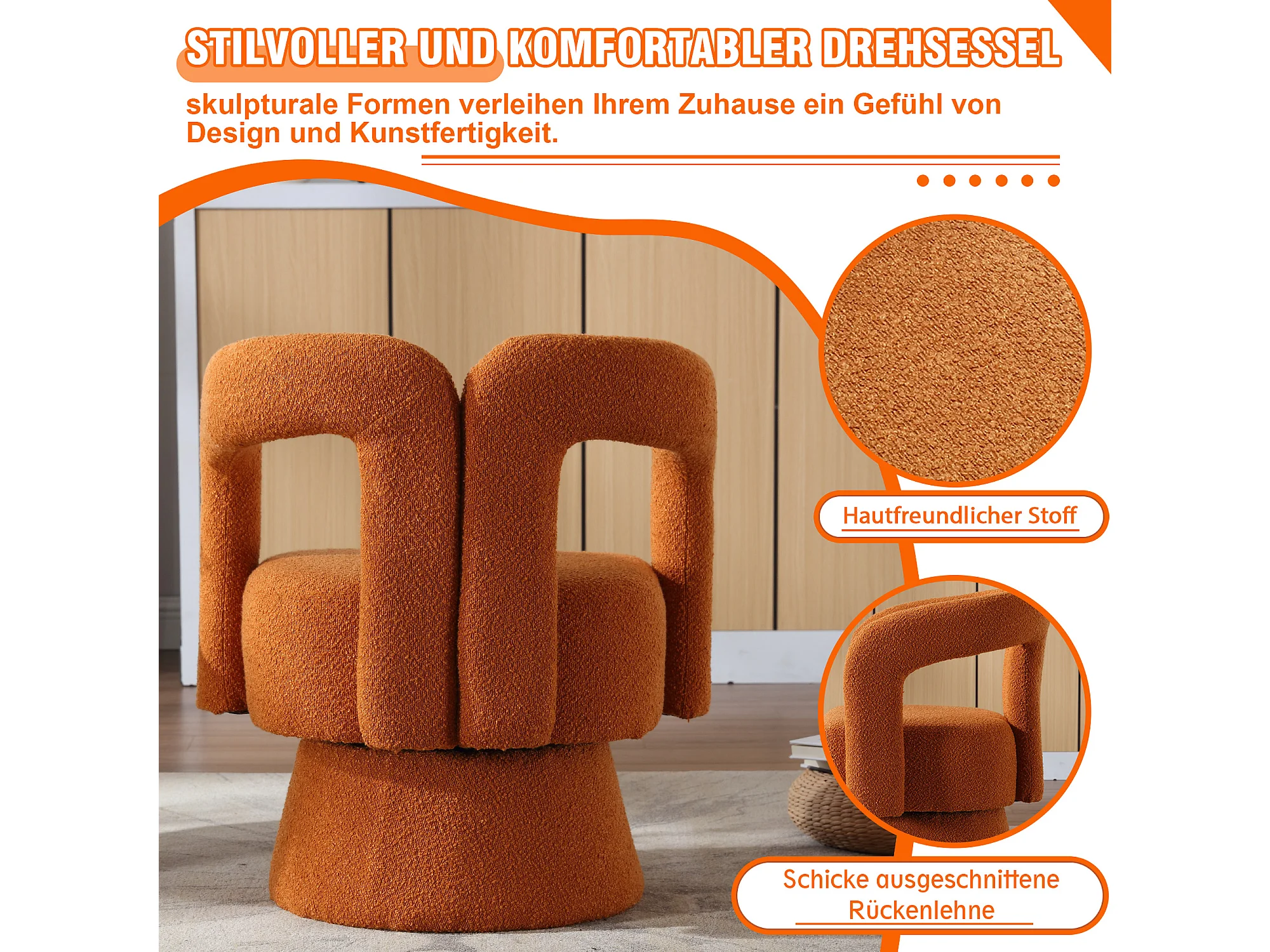 Fauteuil pivotant 360° chaise lounge bouclé confortevole salone camera da letto beige