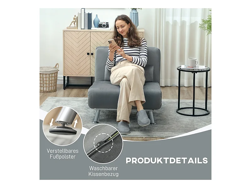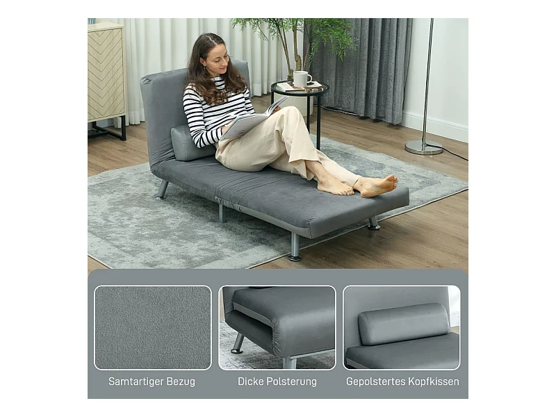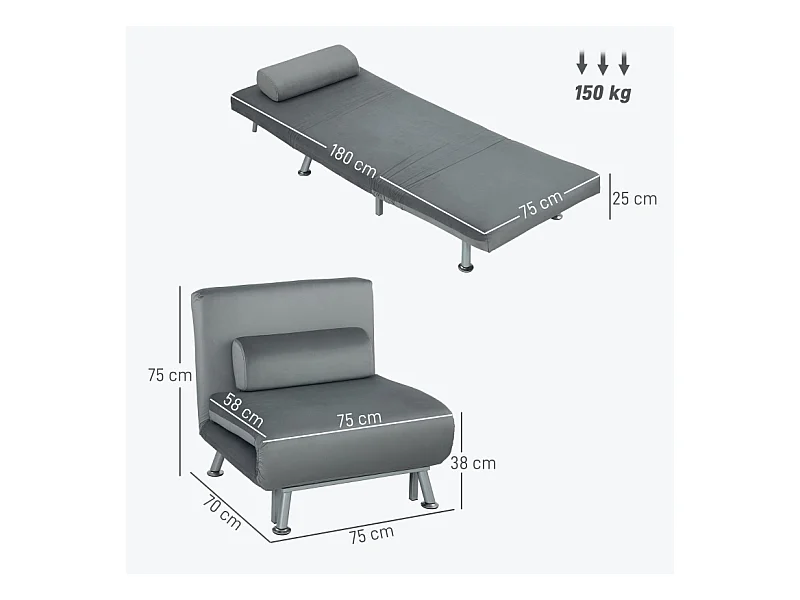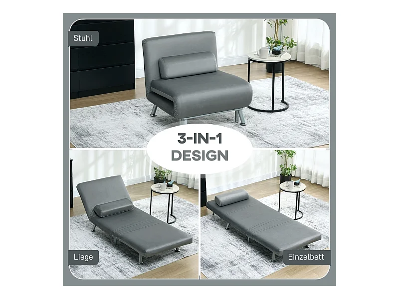 Poltrona letto pieghevole da terra a 3 sezioni in tessuto grigio