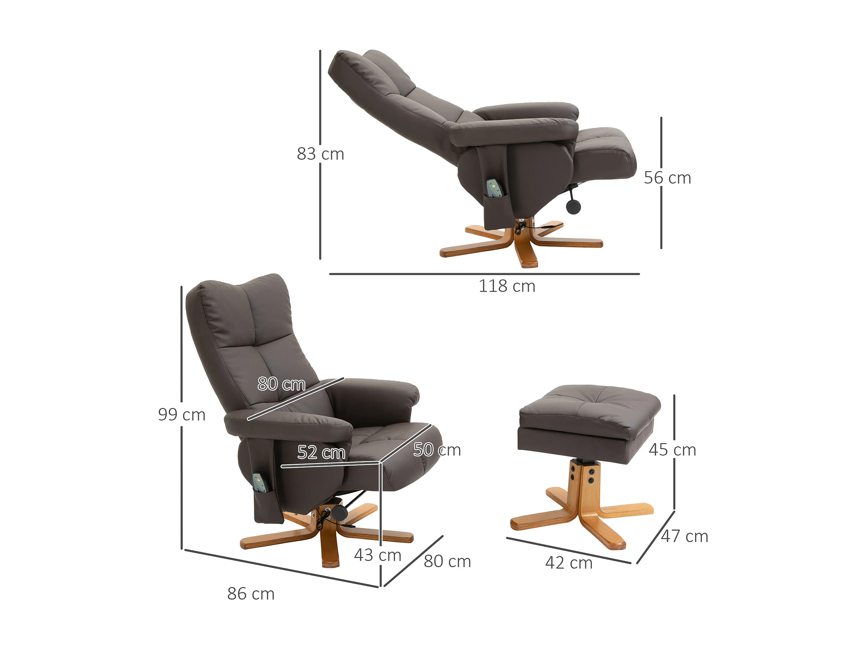 Fauteuil massaggio PU avec repose-pieds 5 punti pour salon chambre brun