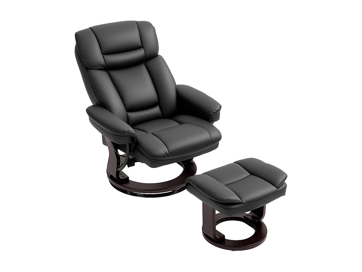 Fauteuil relax pivotant en simili cuir avec repose-pieds et dossier inclinable, noir