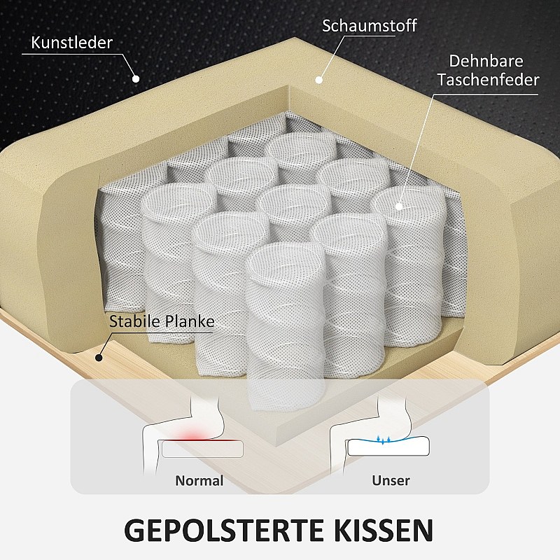 Divano a 2 Posti con Cuscini Nero 140 cm in Similpelle
