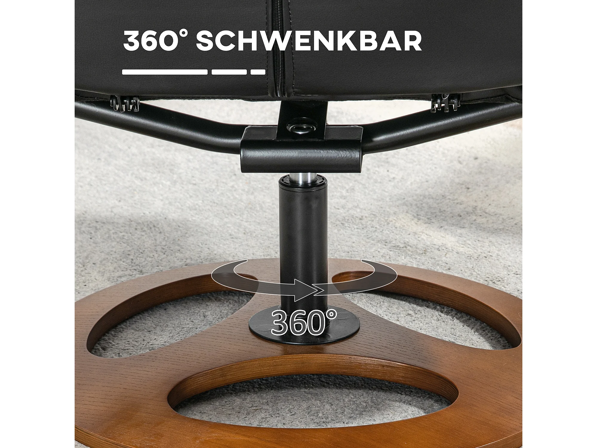 Fauteuil TV relax avec repose-pieds en simili cuir pivotant 360° inclinable pour salon noir