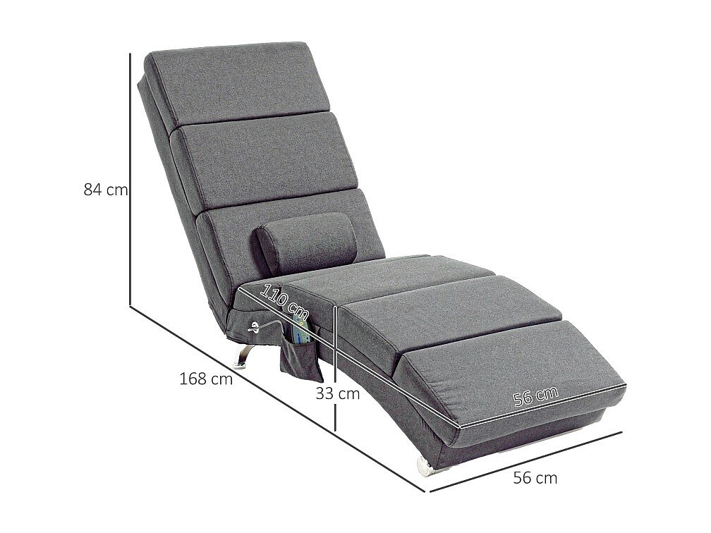 Sedia da massaggio PU ergonomica inclinabile con chauffage grigio 68x72x110-120cm
