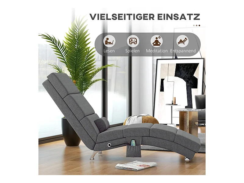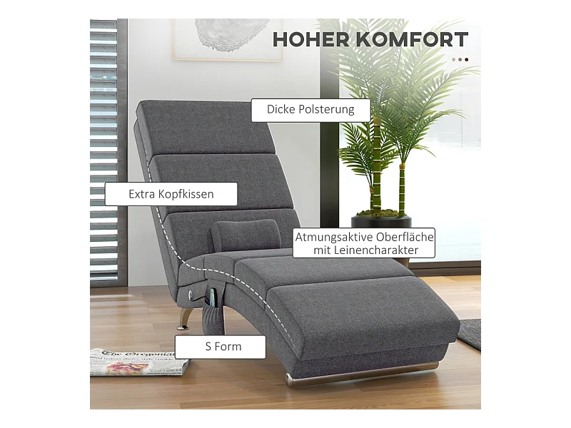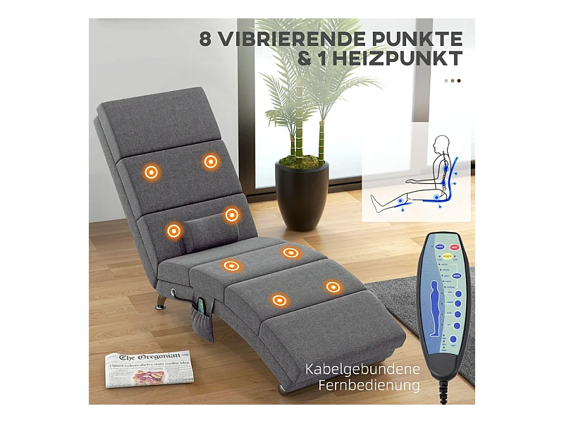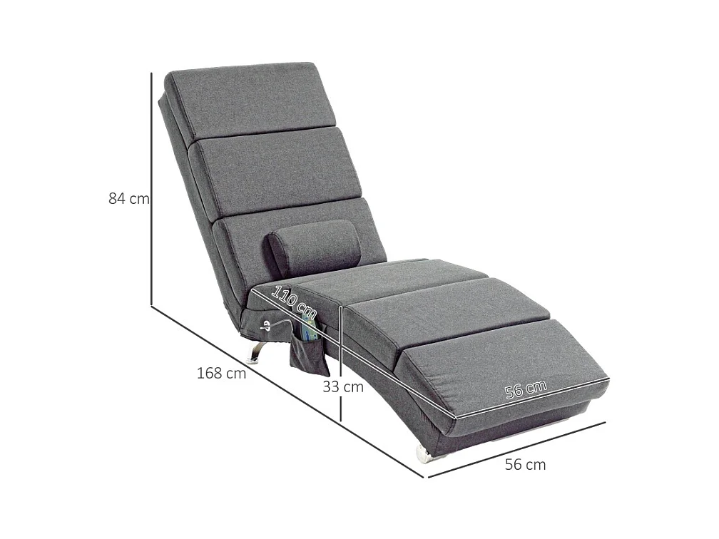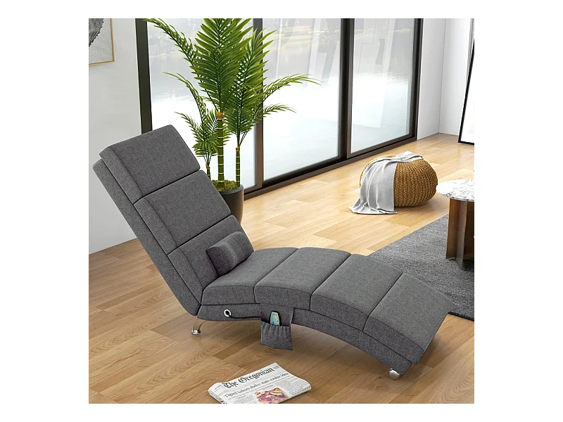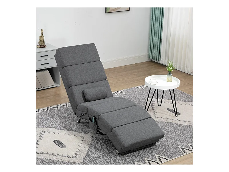 Fauteuil relax électrique tissu con massaggio 5 modalità dossier haut pliable gris foncé