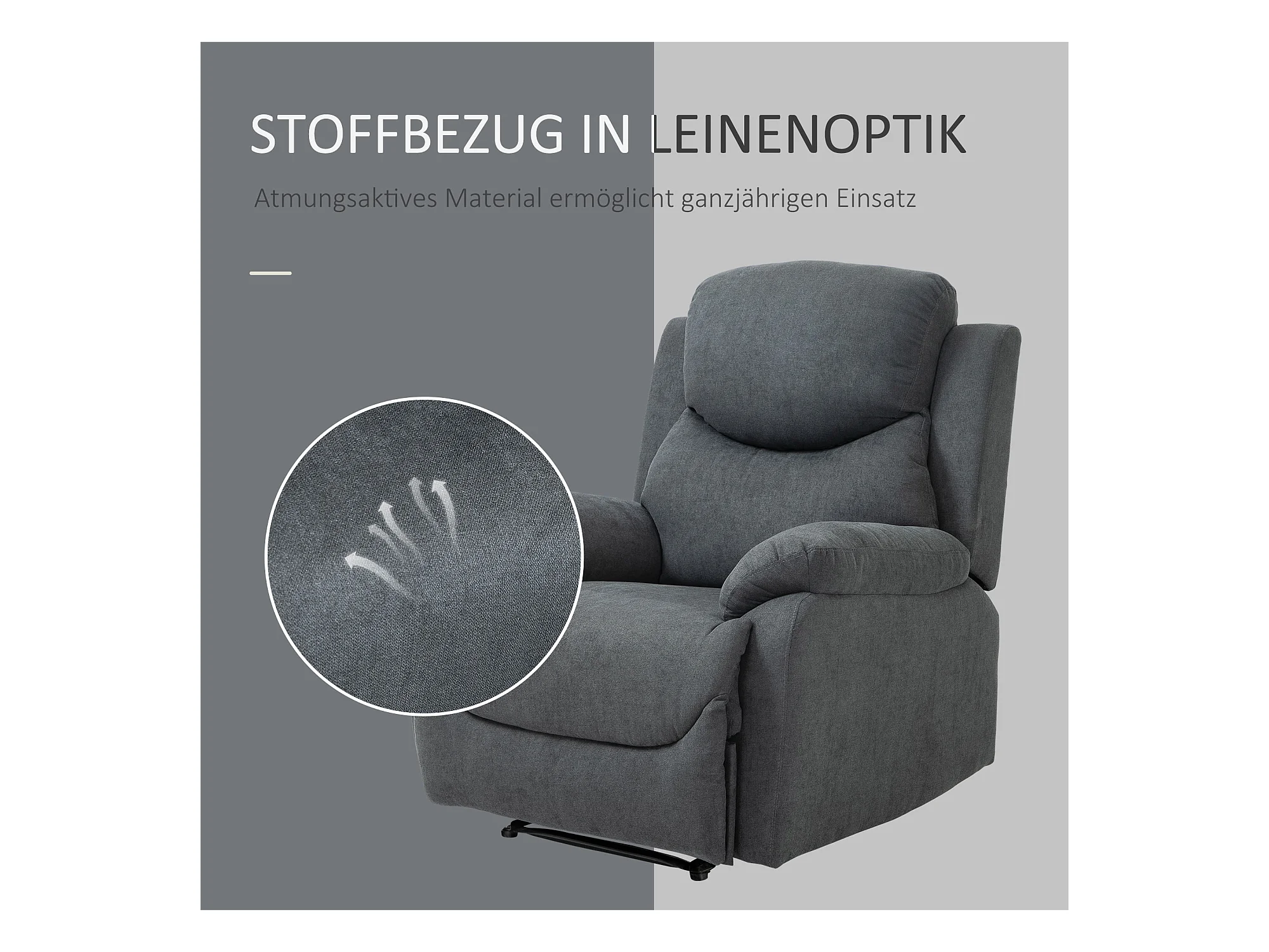 Fauteuil relax inclinabile 150° con assise lin, grigio foncé pour salon
