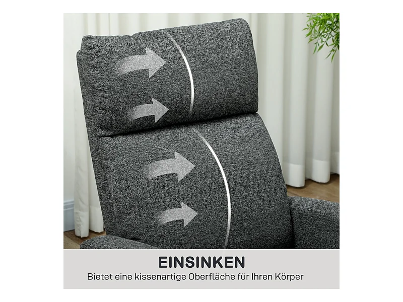 Fauteuil relax inclinabile 150° con assise lin, grigio foncé pour salon